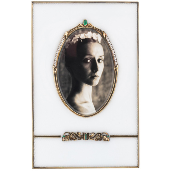 Each element of the frame is made with great skill and attention to detail, which gives it a unique charm and elegance. Diamonds and Guilloche enamel are a great combination of materials that give the frame an exquisite and luxurious look.
