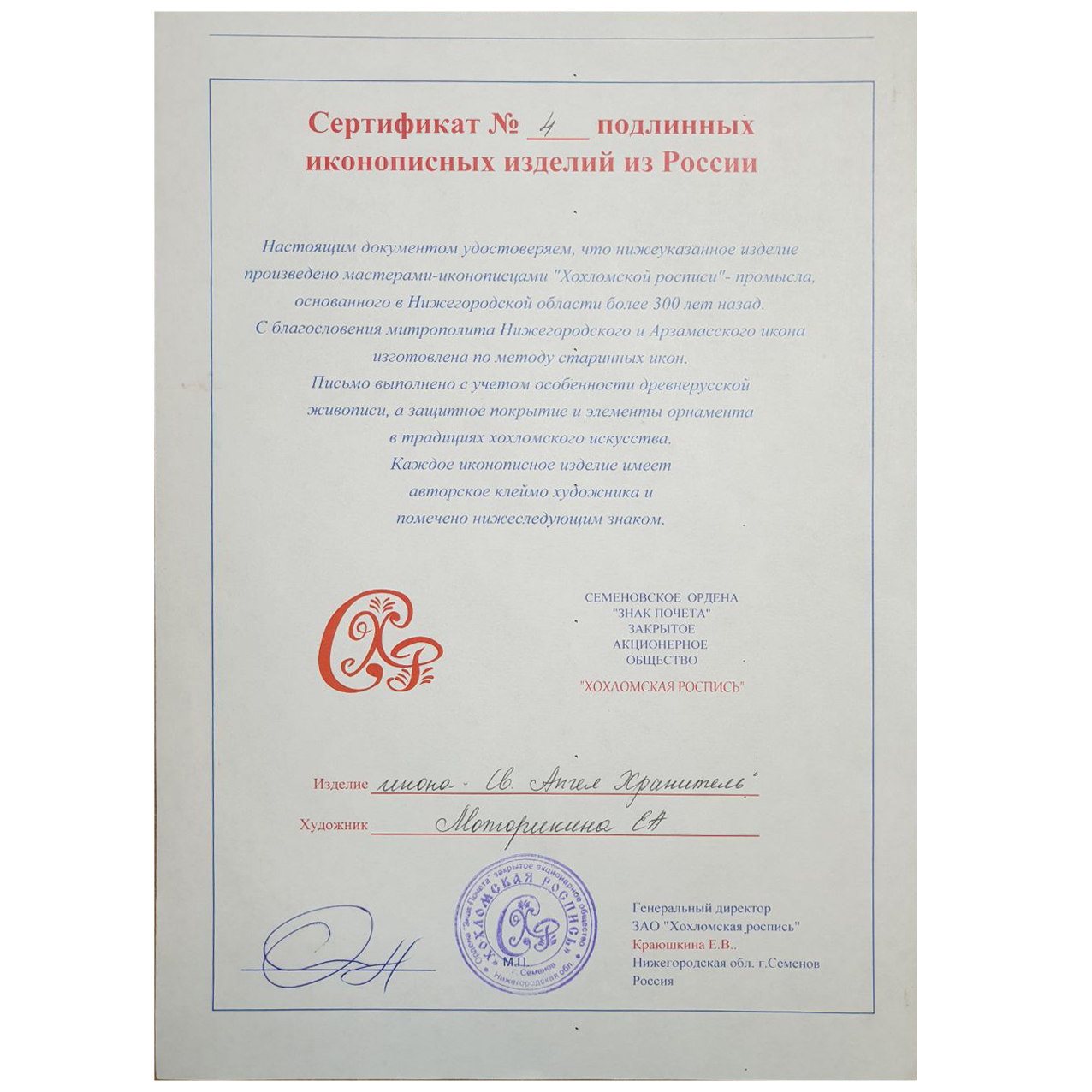The icon of the "Guardian Angel" of Khokhloma