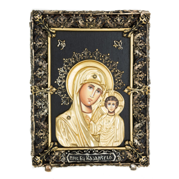 Kazan Icon of the Mother of God with stones (finish)Kazan Icon of the Mother of God with stones (finish)Painting is the oldest art of miniature painting. The manufacturing process is incredibly complicated. The best master painters work on the creation of each product. Enamel painting retains purity, luster and transparency of color almost forever. The products of Rostov finifty are recognized by art connoisseurs all over the world. They are kept in museums such as the Museum of Folk Art in Moscow, the State Historical Museum, the State Russian Museum.