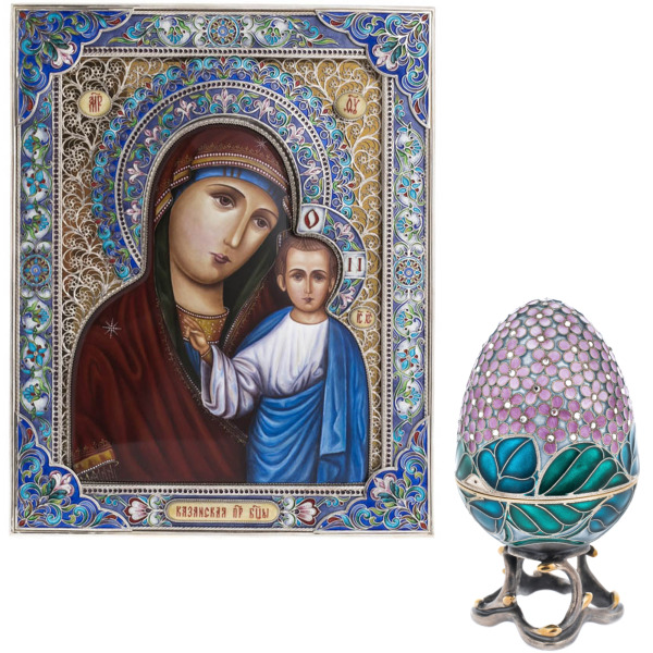 The gift set, which includes the icon "Mother of God of Kazan" and a silver egg-box "Purple Lilac" with cubic zirconia, is an exquisite combination of spirituality and jewelry, reflecting the depth of Orthodox traditions and the skill of Russian artisans.