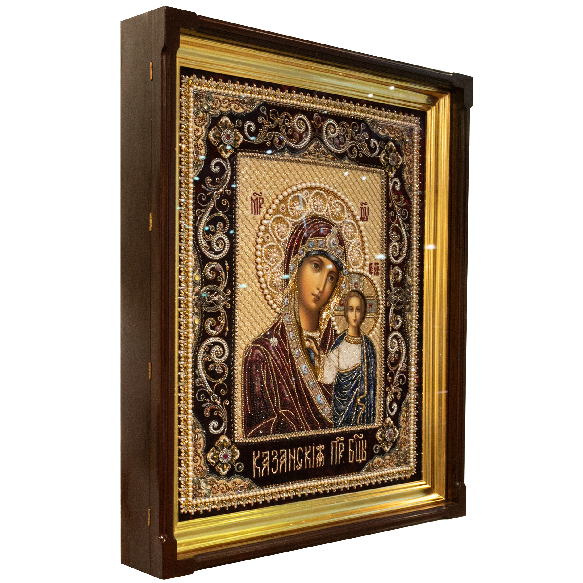 Вышитая икона "Пресвятая Богородица Казанская" в киоте