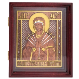 Table icon "The Mother of God Seven-shot" Table icon "The Mother of God Seven-shot" Icons are noble gifts that are presented from the bottom of their hearts with wishes of love and kindness. They are part of Russian culture and a symbol of the patronage of higher powers, so this is not just a beautiful painting made by hand by talented craftsmen, but also a talisman that protects against diseases and troubles. Orthodox icons, carved, painted on canvas, embroidered with beads or made of precious metals, look very beautiful and can become a real family shrine, inherited. Icons are a universal souvenir for Easter, Christmas and any holidays.