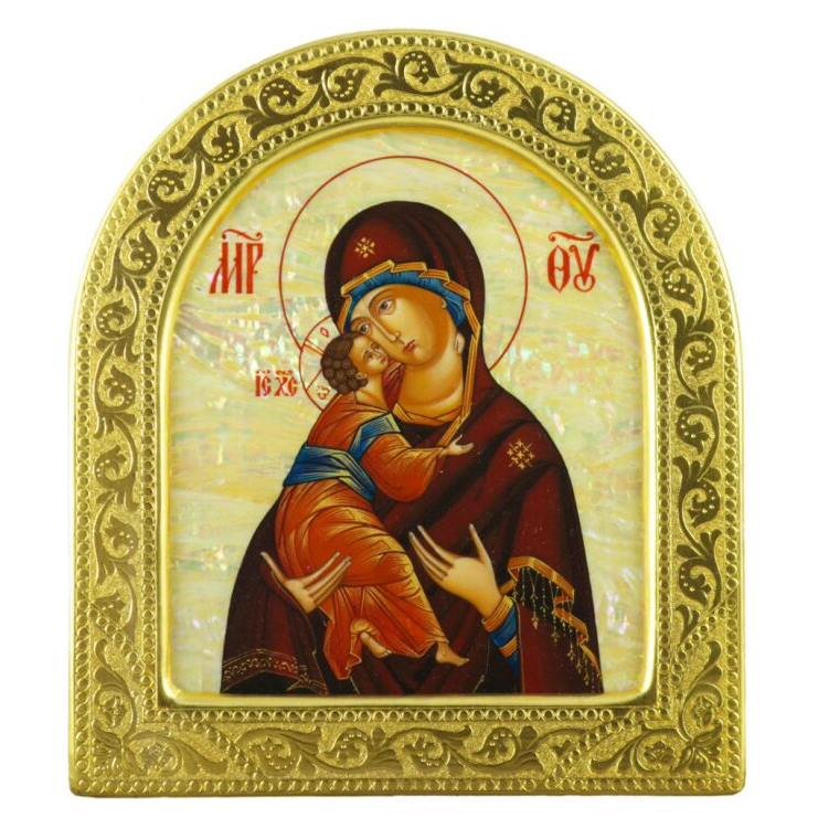 Mother-of-pearl icon "Our Lady of Vladimir" in a golden frame (arch)