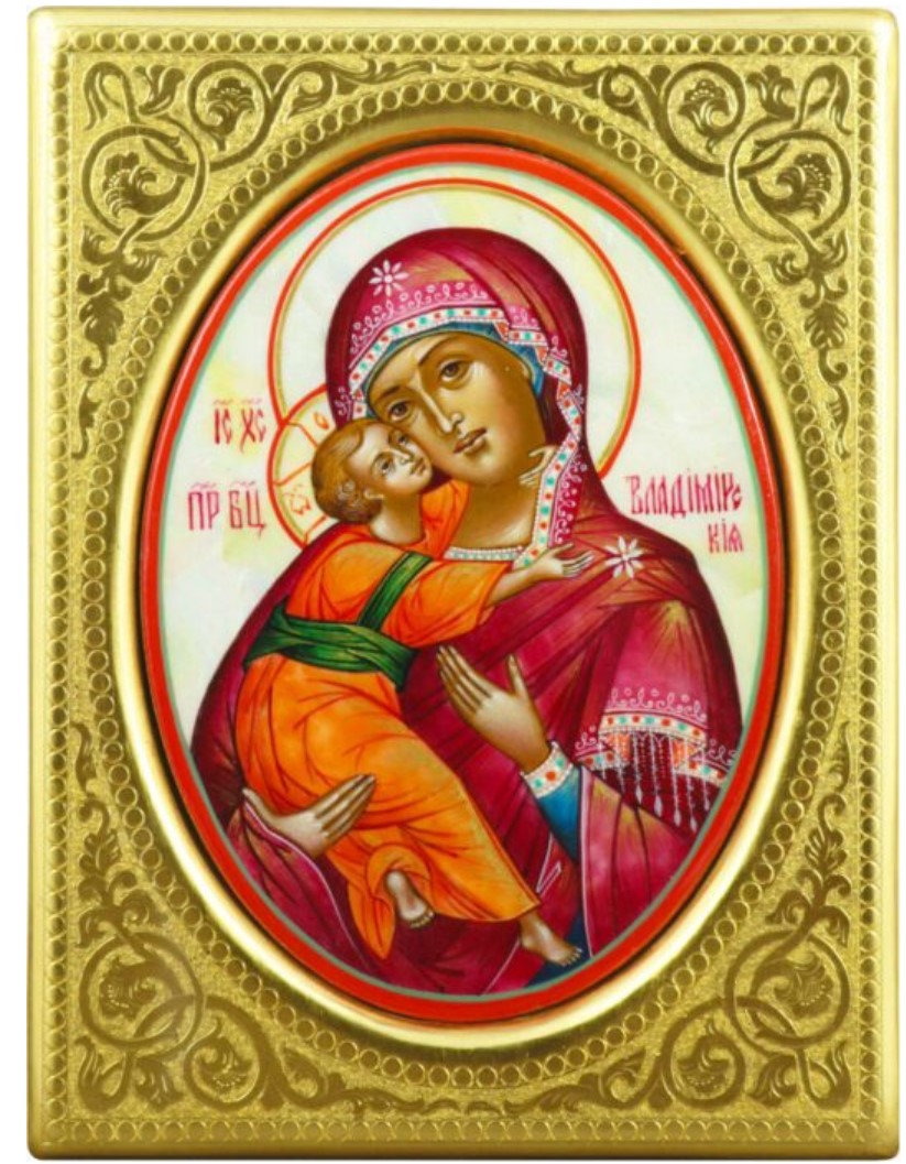 Mother-of-pearl icon "Our Lady of Vladimir" in a gold frame