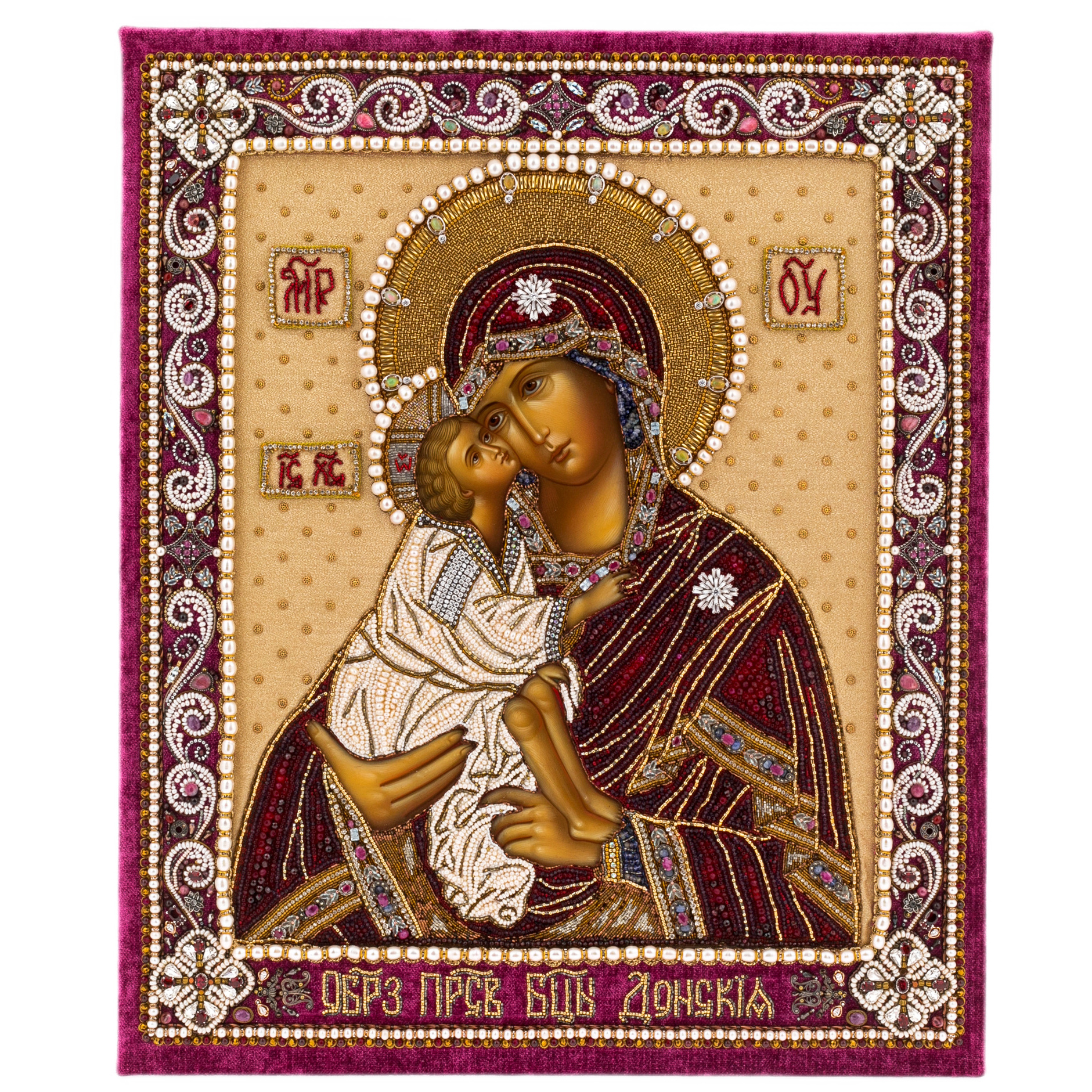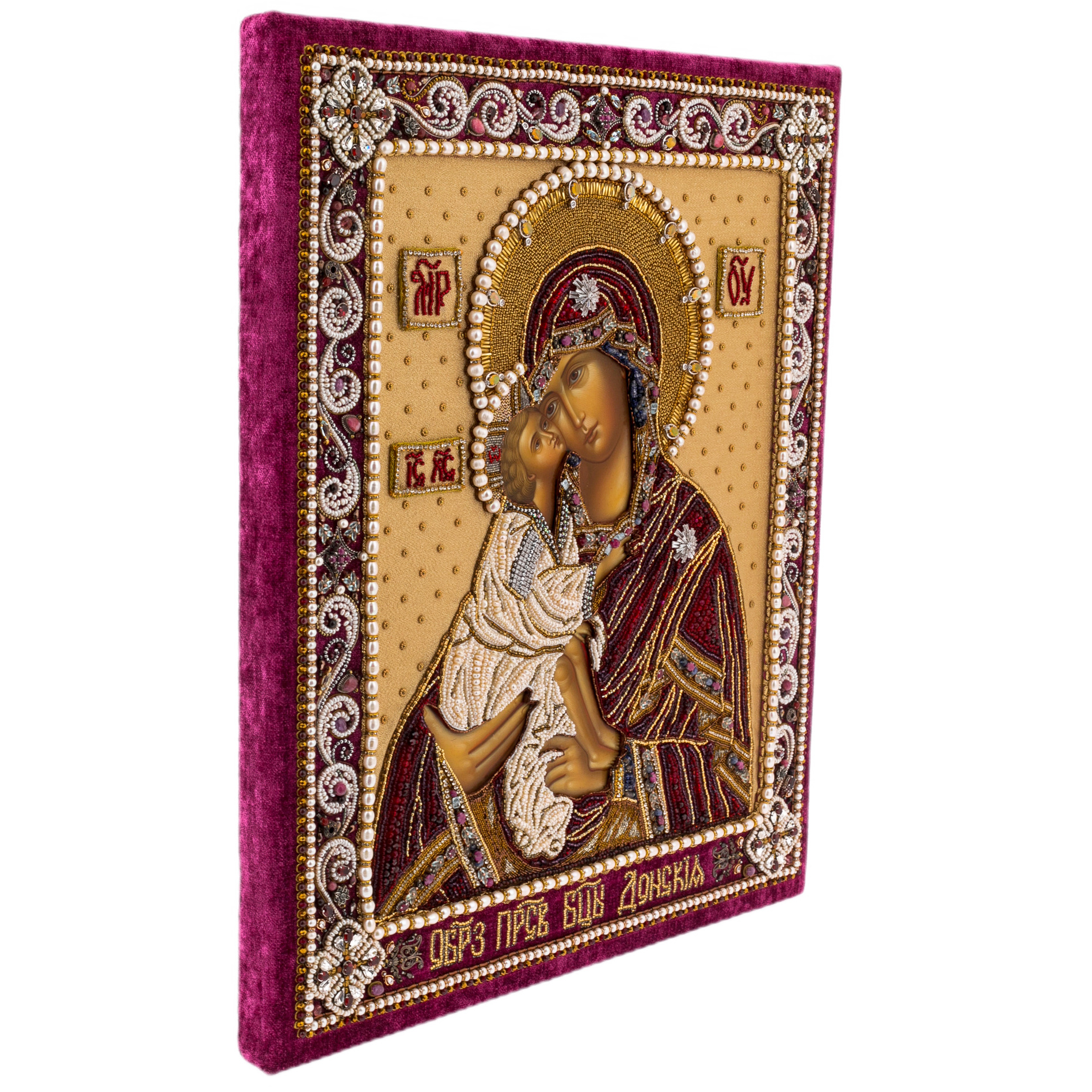 The Icon of the Mother of God "Donskoy" is a magnificent combination of spiritual depth and exquisite art, where every detail embodies divine harmony and care. The face of the Virgin, executed with the finest precision, seems to be surrounded by the radiance of eternity. Her gaze, full of love and compassion, is turned to the Christ Child, whose touch speaks of the indestructible connection between heaven and earth.