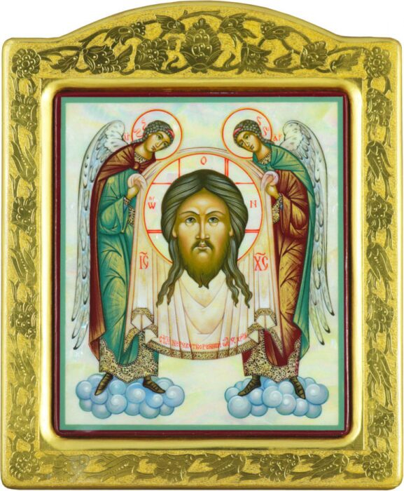 Icon of the "Savior Not Made with Hands" with mother of pearl in a gold frame