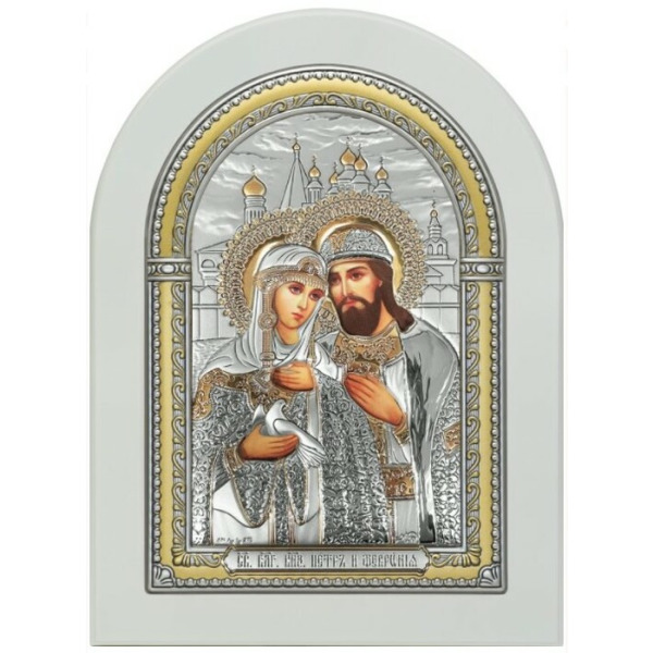 Peter and Fevronia icon with mother of pearlPeter and Fevronia icon with mother of pearlHandwritten icons are expensive and noble gifts that are presented from the bottom of their hearts with wishes of love and kindness. They are a part of Russian culture and a symbol of the patronage of higher powers, so this is not just a beautiful painting made by hand by talented craftsmen, but also a talisman that protects against diseases and troubles. Orthodox icons, carved, painted on canvas, embroidered with beads or made of precious metals, look very beautiful and can become a real family shrine, inherited. Icons are a universal souvenir for Easter, Christmas and any holidays.