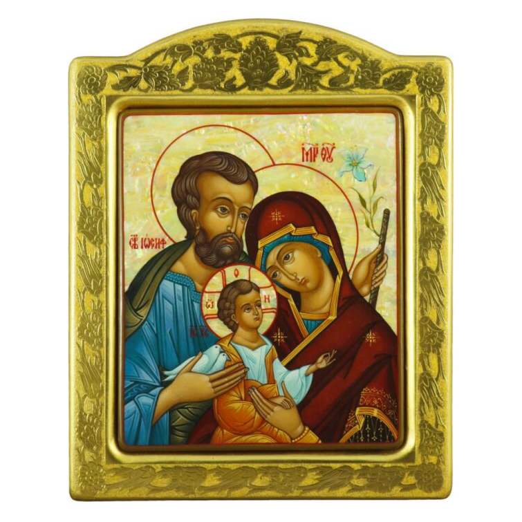 Icon of the Holy Family with mother-of-pearl in a gold frame
