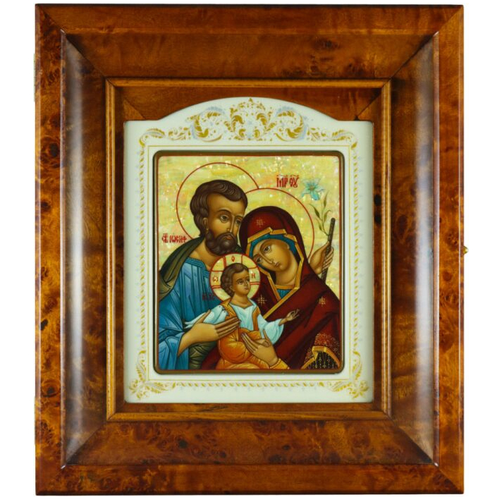 Icon of the "Holy Family" in a kiosk on natural mother-of-pearl