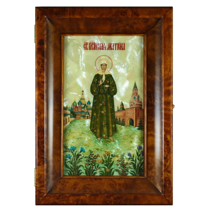 Icon in the Matrona Moskovskaya kiosk on natural mother-of-pearl