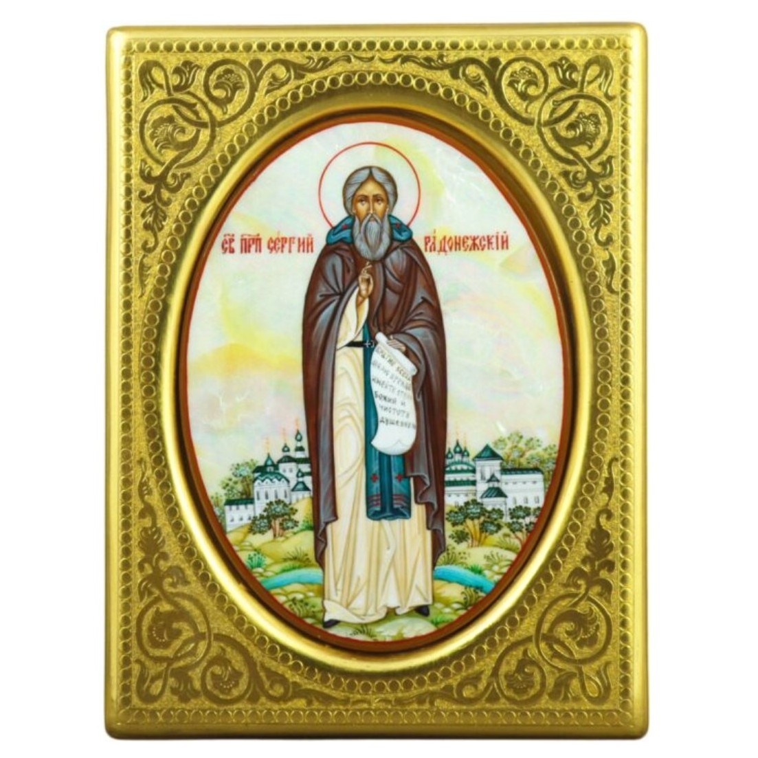 Icon with mother-of-pearl "Sergius of Radonezh" in a gold frame