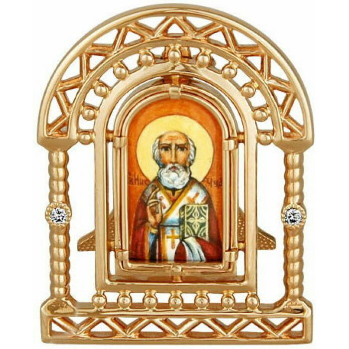 Silver icon "Nicholas the Wonderworker" with diamonds
