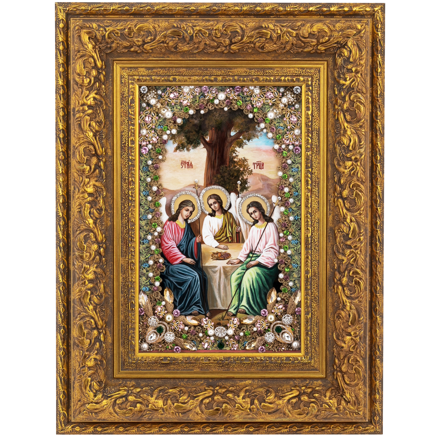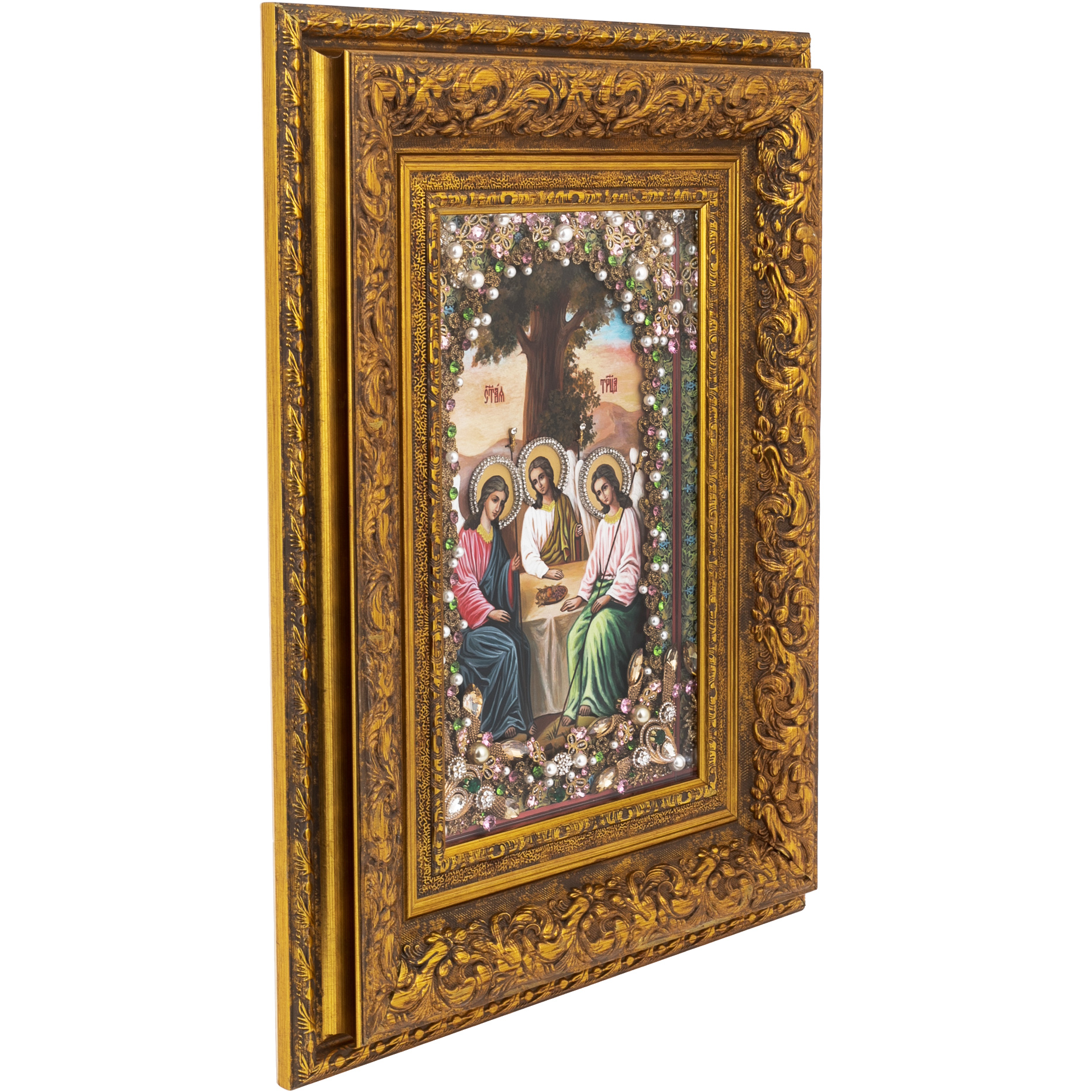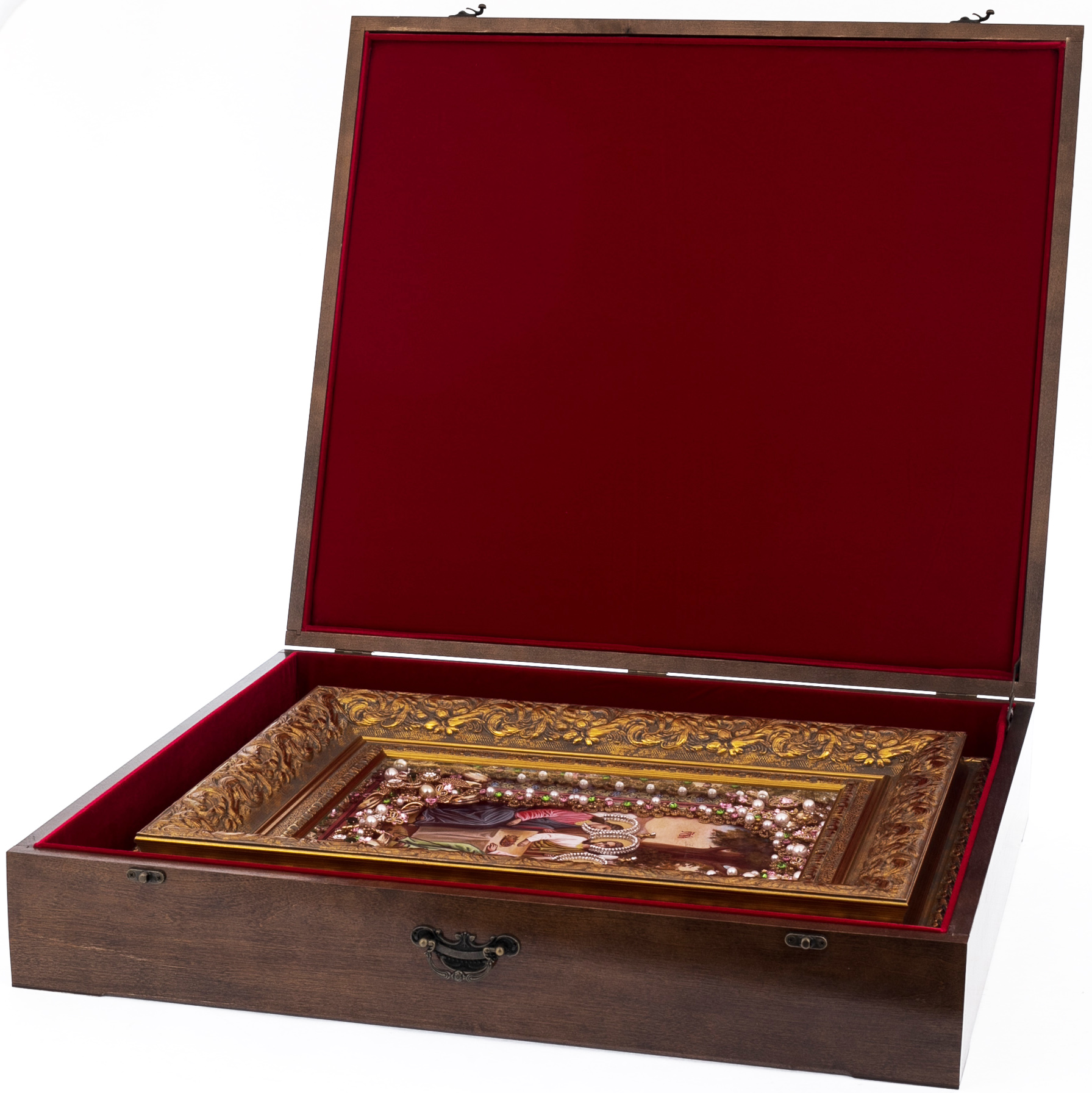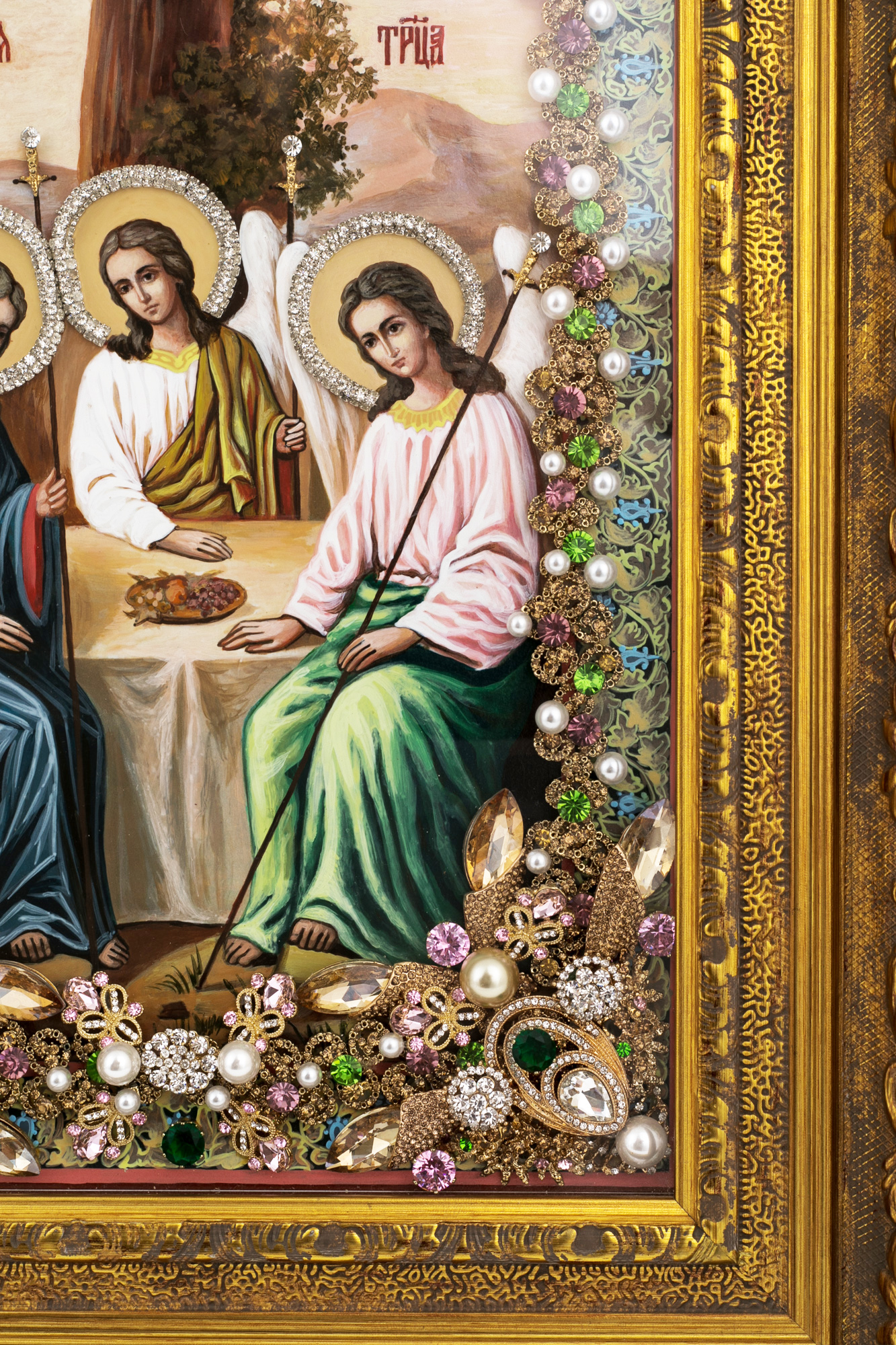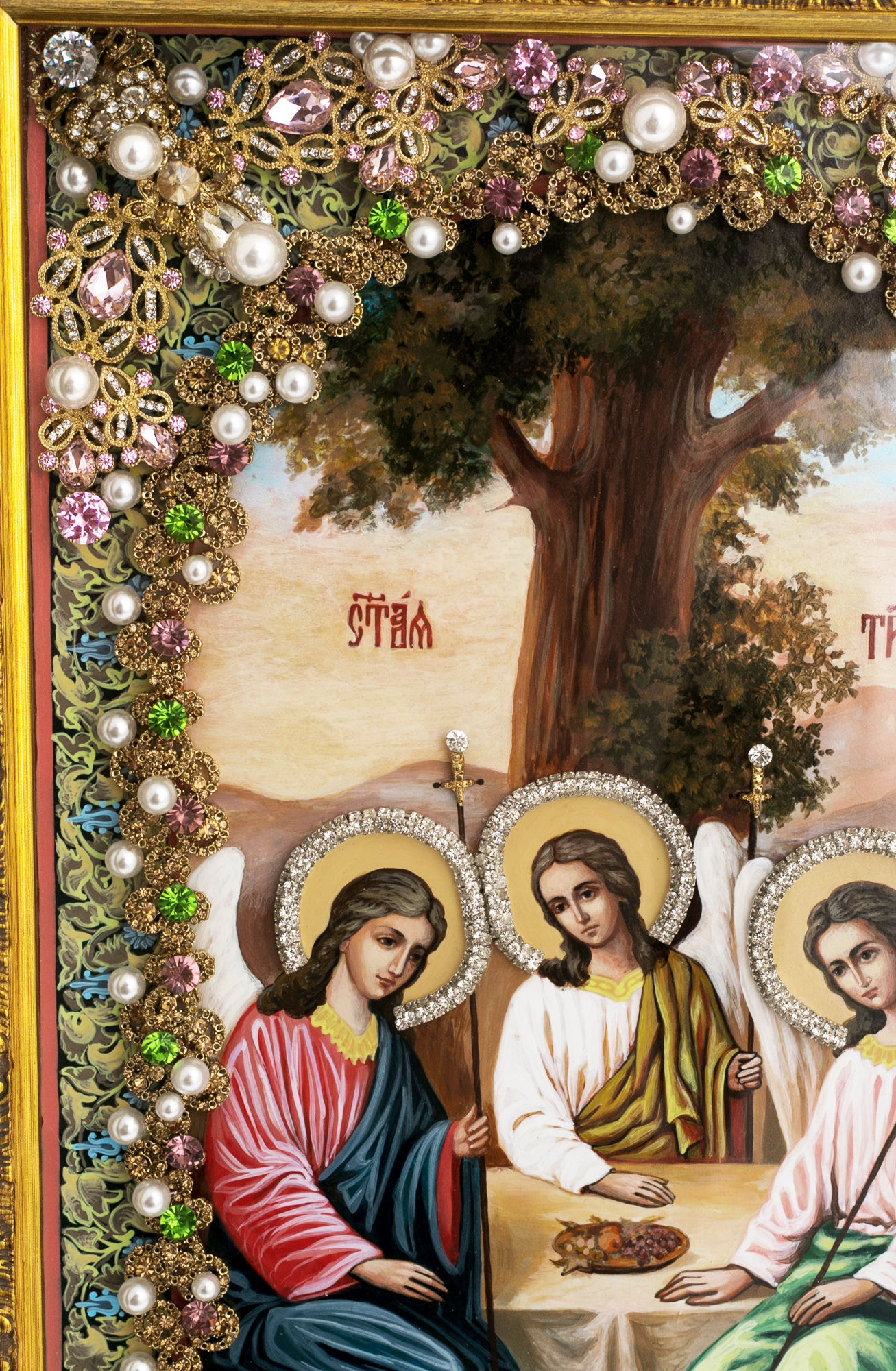 Materials:lime board levkas, egg tempera, gilding with gold leaf, rhinestones, zirconium, cubic zirconia, pearls.
