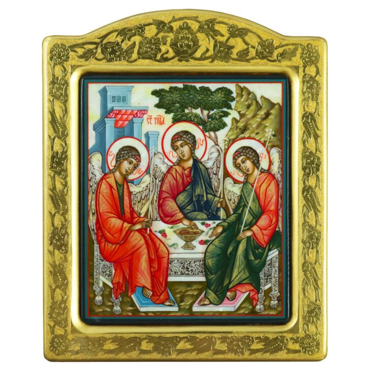 Icon of the Holy Trinity with mother of pearl in a gold frame