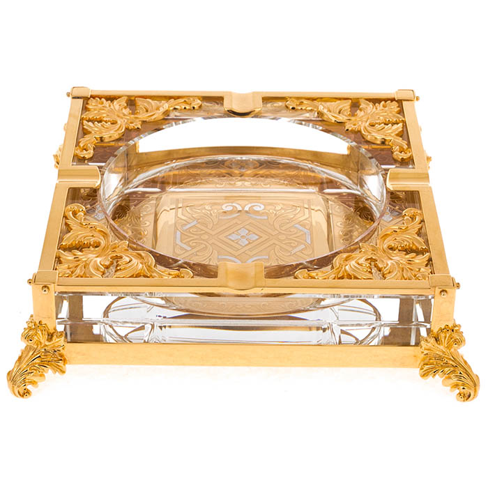 Four gilded legs elevate this object above the surface, like the columns of an ancient temple, preserving the symbolism of wealth and chosenness. Their exquisite relief is reminiscent of ancient palaces, where every touch in the interior served as confirmation of the high status of the owner. There are no random details in this ashtray — every line, every engraving carries a secret message that true luxury does not tolerate fuss, it is eternal and flawless.