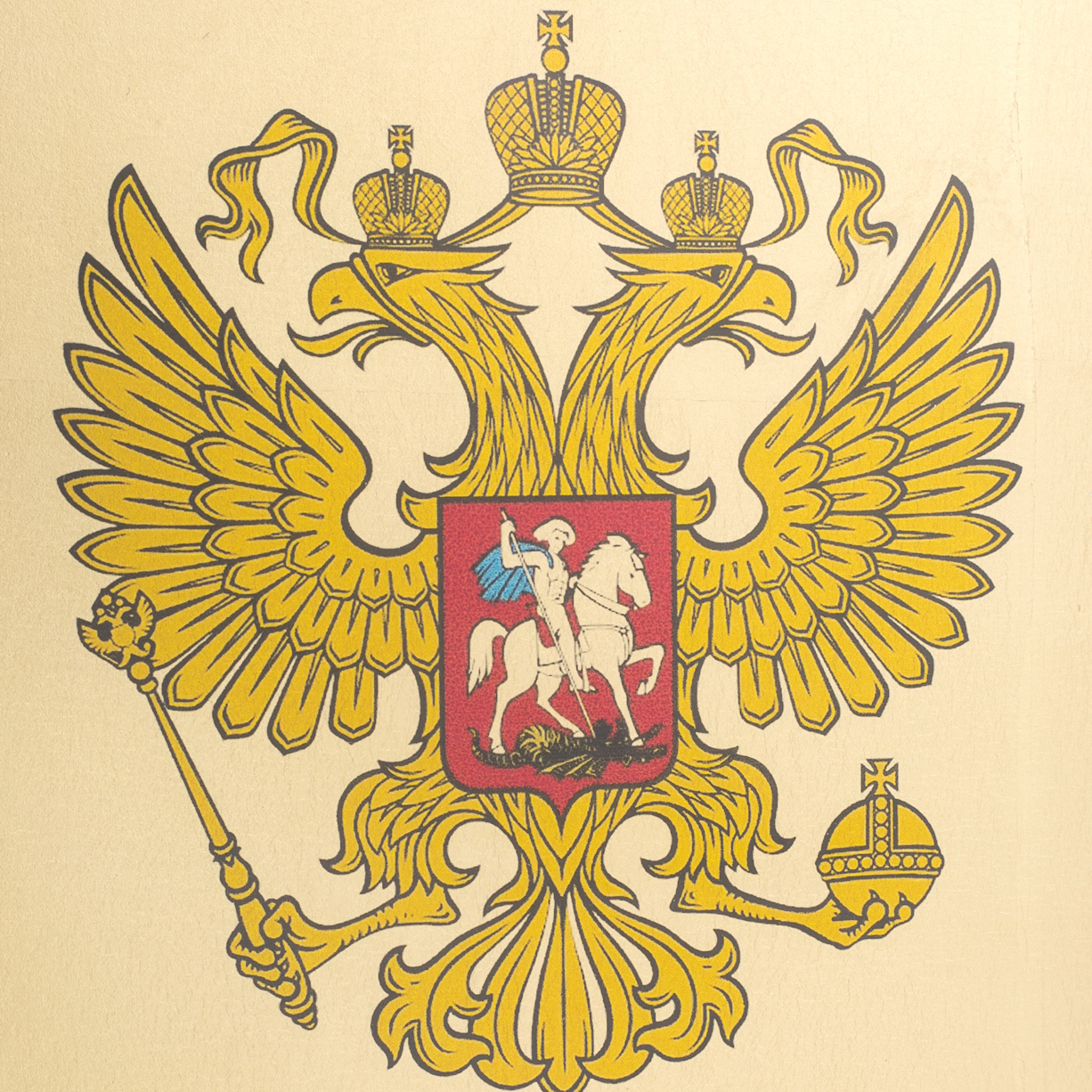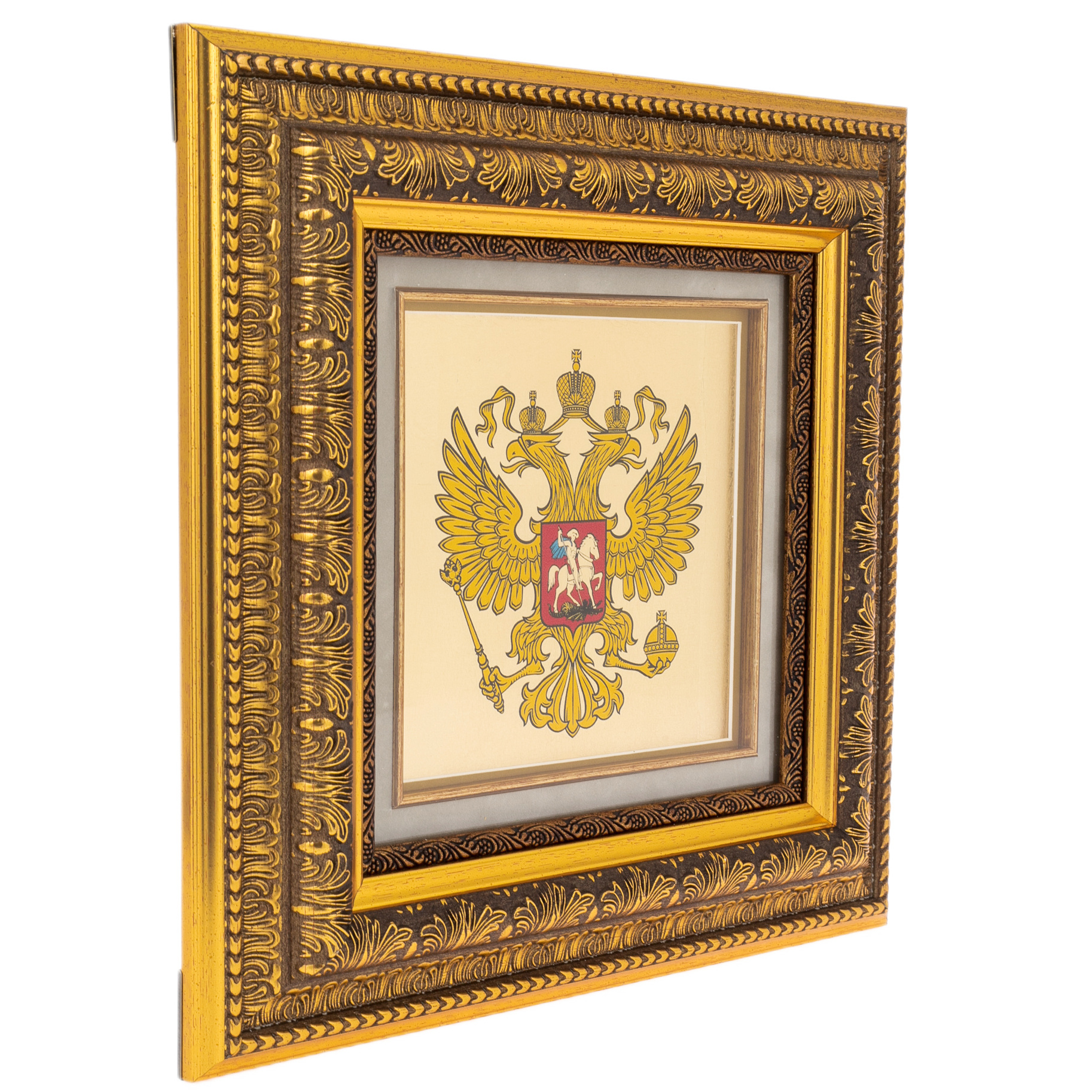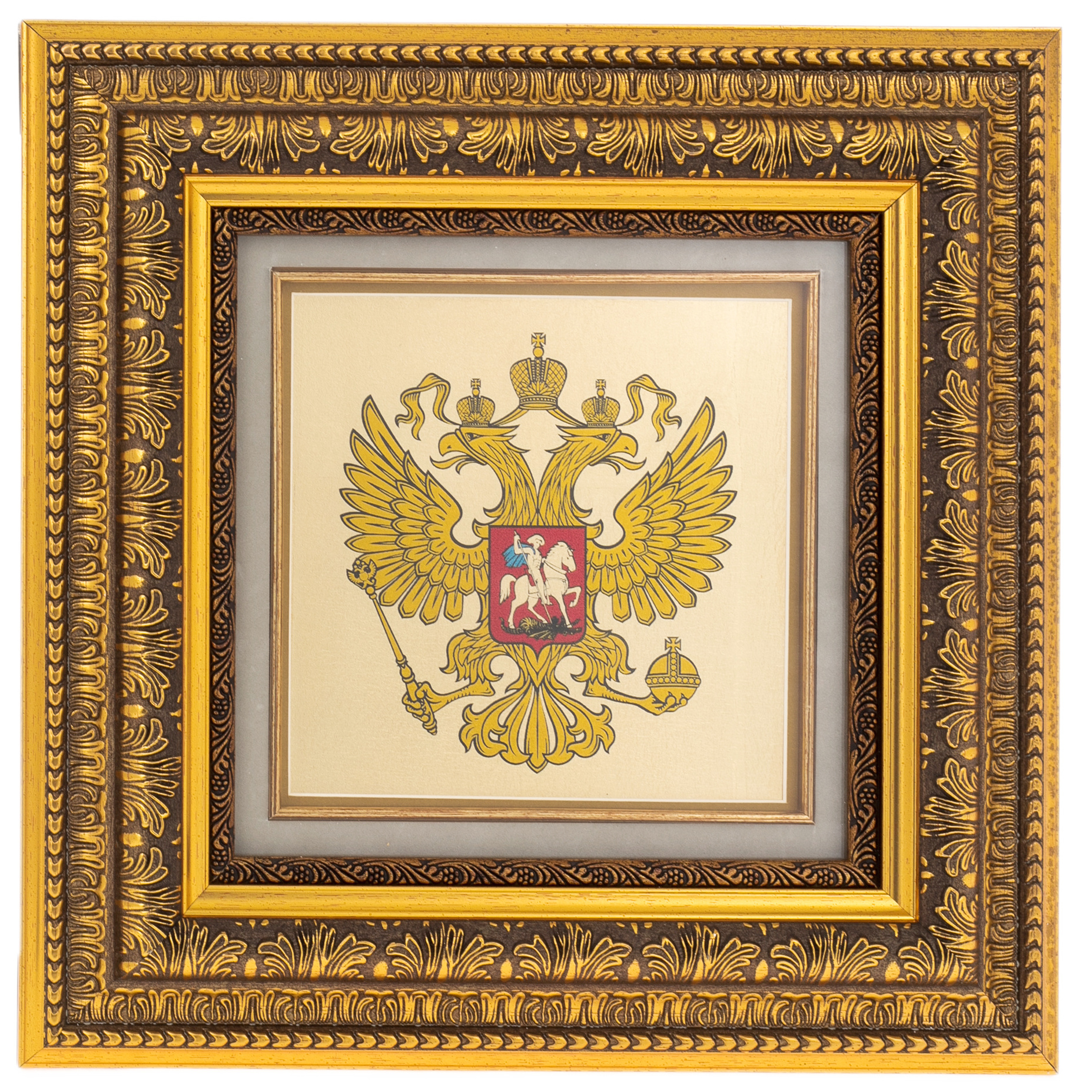 Painting on gold leaf "Coat of Arms of Russia" in a wooden box
