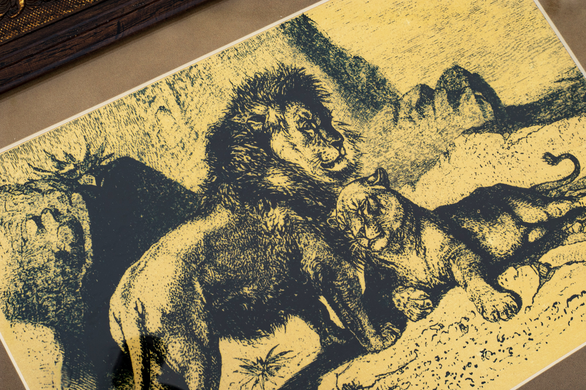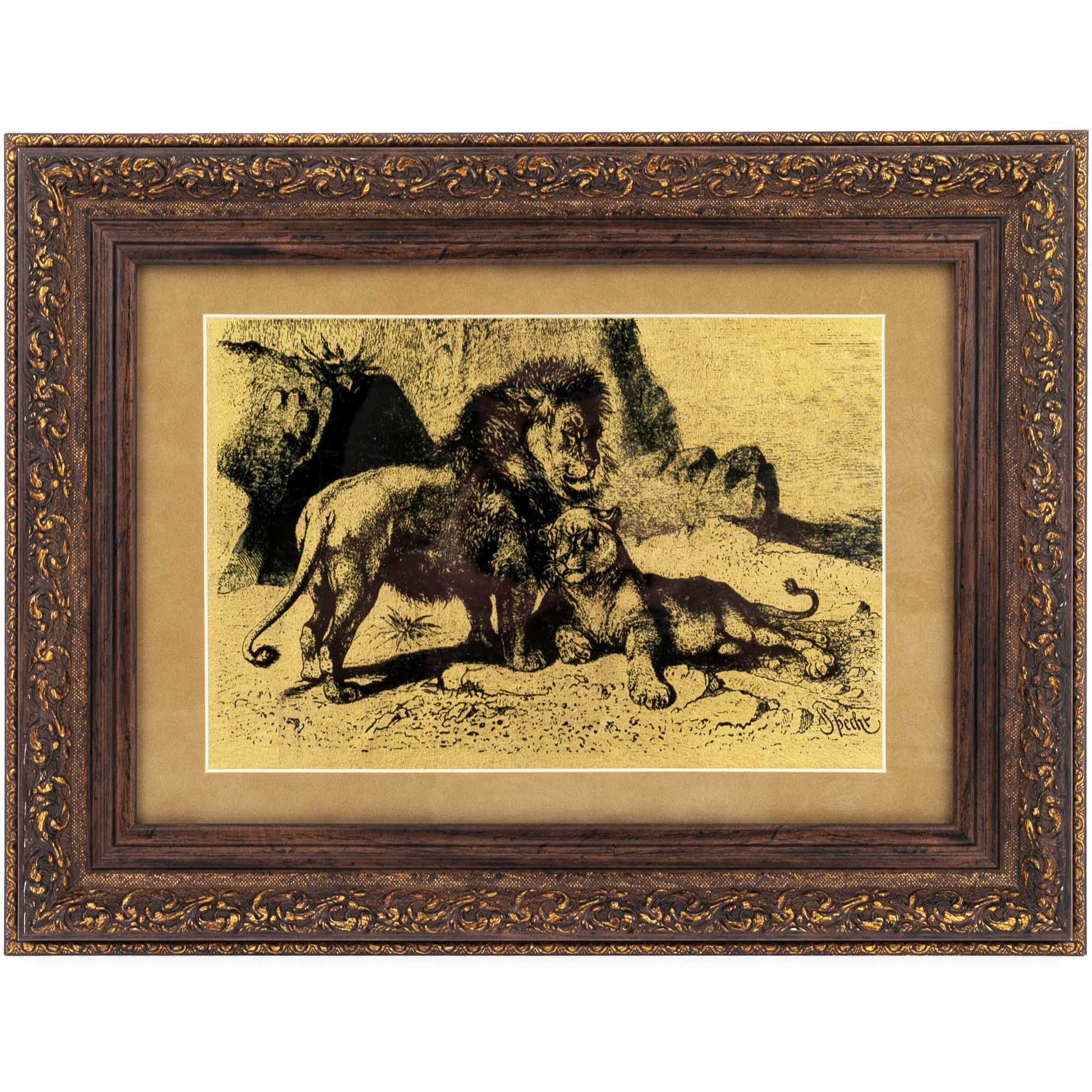 Materials:960 gold, velvet passepartout, plastic baguette, glass.
