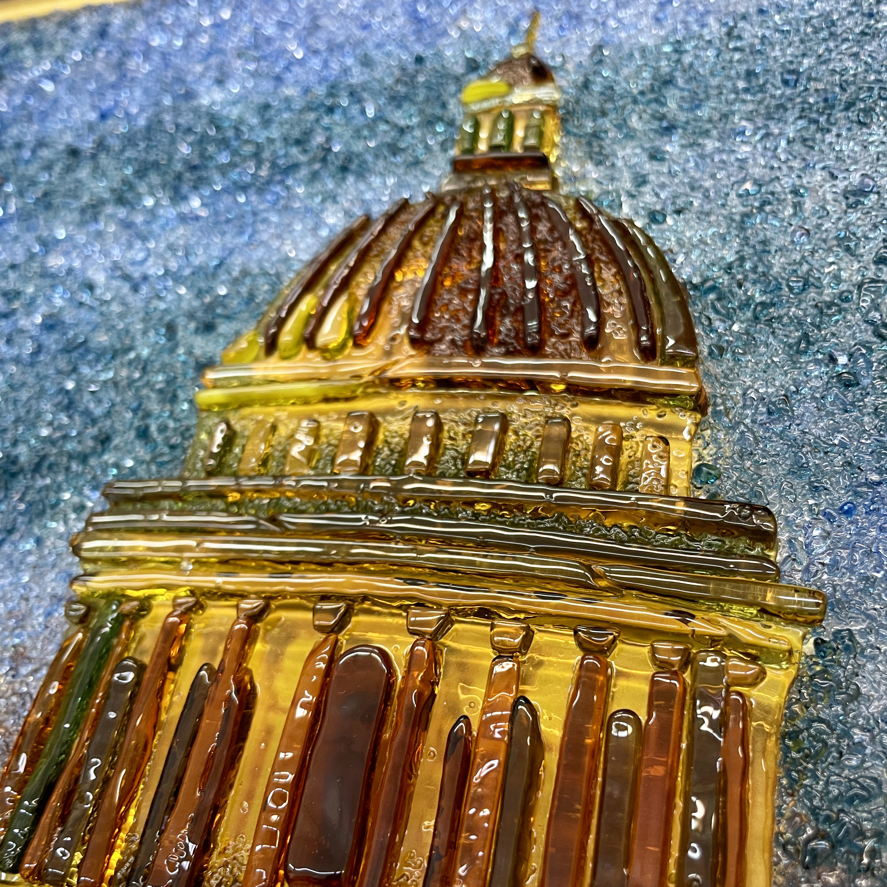 Technique of execution: sintering, firing of stained glass at high temperatures.