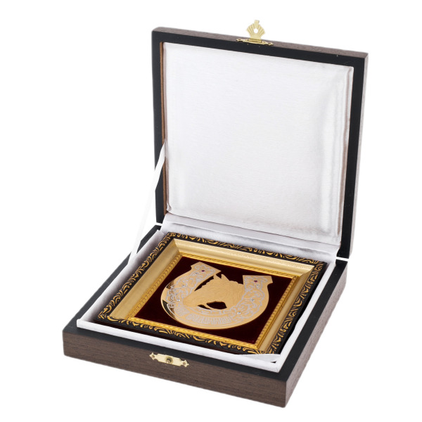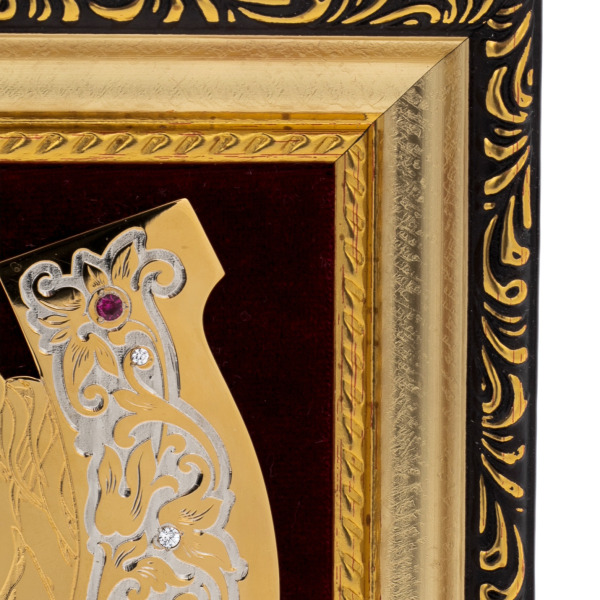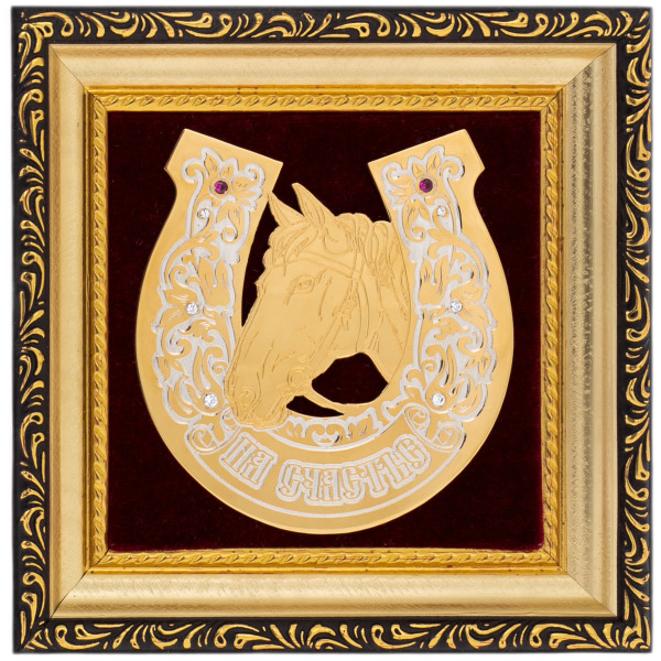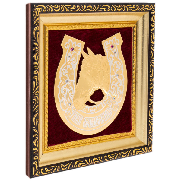 The Horse with a Horseshoe mural is a symbol of luck, strength and nobility, embodied in the precious metals of Chrysostom. A gold-plated brass horseshoe, decorated with the finest engraving and crystal inserts, shines on a velvet background. In its center is an elegant bas—relief of a horse's head, executed with jewelry precision and warmth.