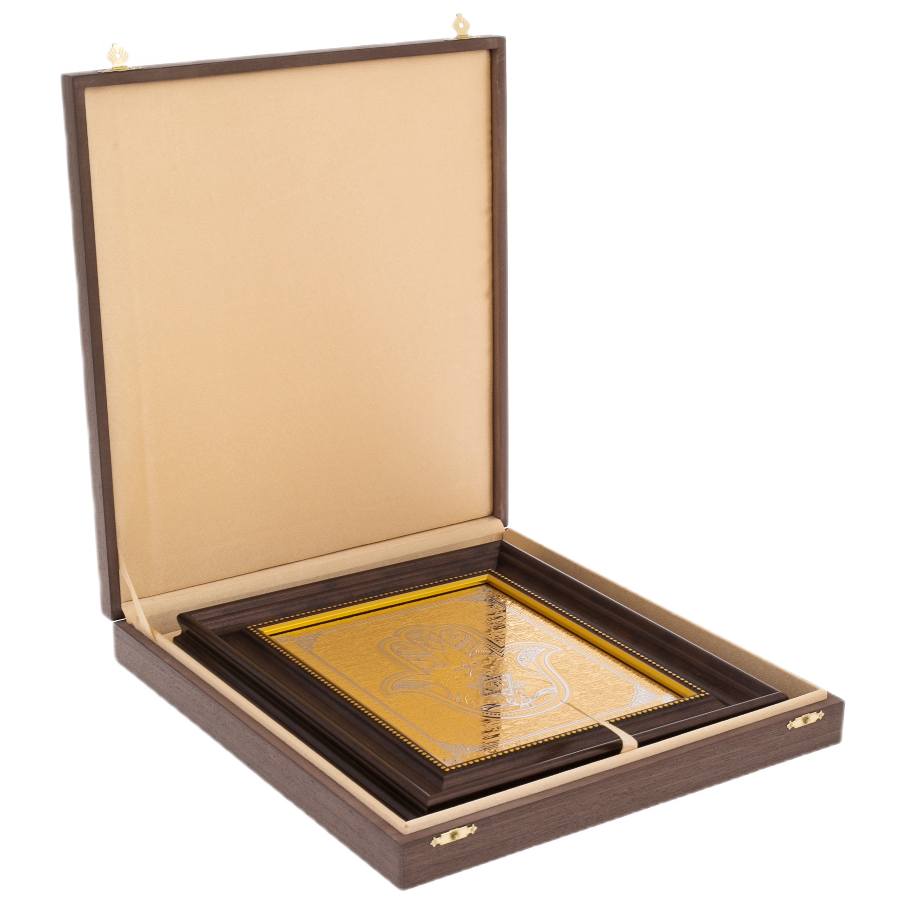 The background of the panel is the finest texture of gold, reminiscent of sand dunes or pages of ancient scrolls that hold the secrets of centuries. The noble wood frame adds restraint and nobility to the composition, creating a perfect contrast with the shining central motif. Every detail of this frame is carefully crafted, and the inner gold edging seems to enclose the panel in a ring of light, from where it is impossible to look away.