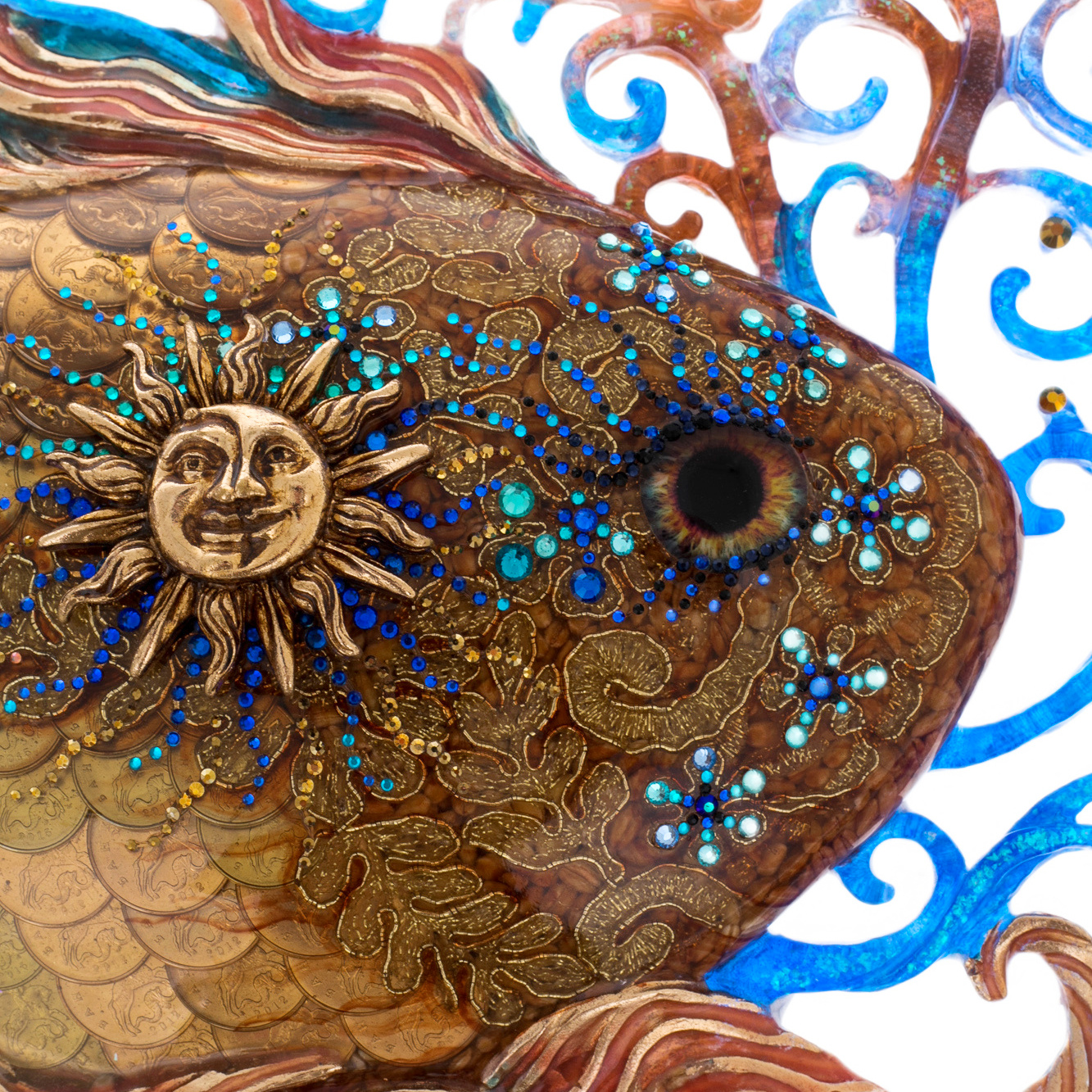 The magnificent wall panel "Money Fish" will become spectacular decorations for an apartment, a country house, an office. The goldfish in Russian fairy-tale mythology is a symbol that brings wealth and prosperity. Perhaps, only for our people, a fish - and even a golden one - is a kind of mascot. That's why it is often used by masters of Russian decorative and applied art to create amazing artistic interpretations.