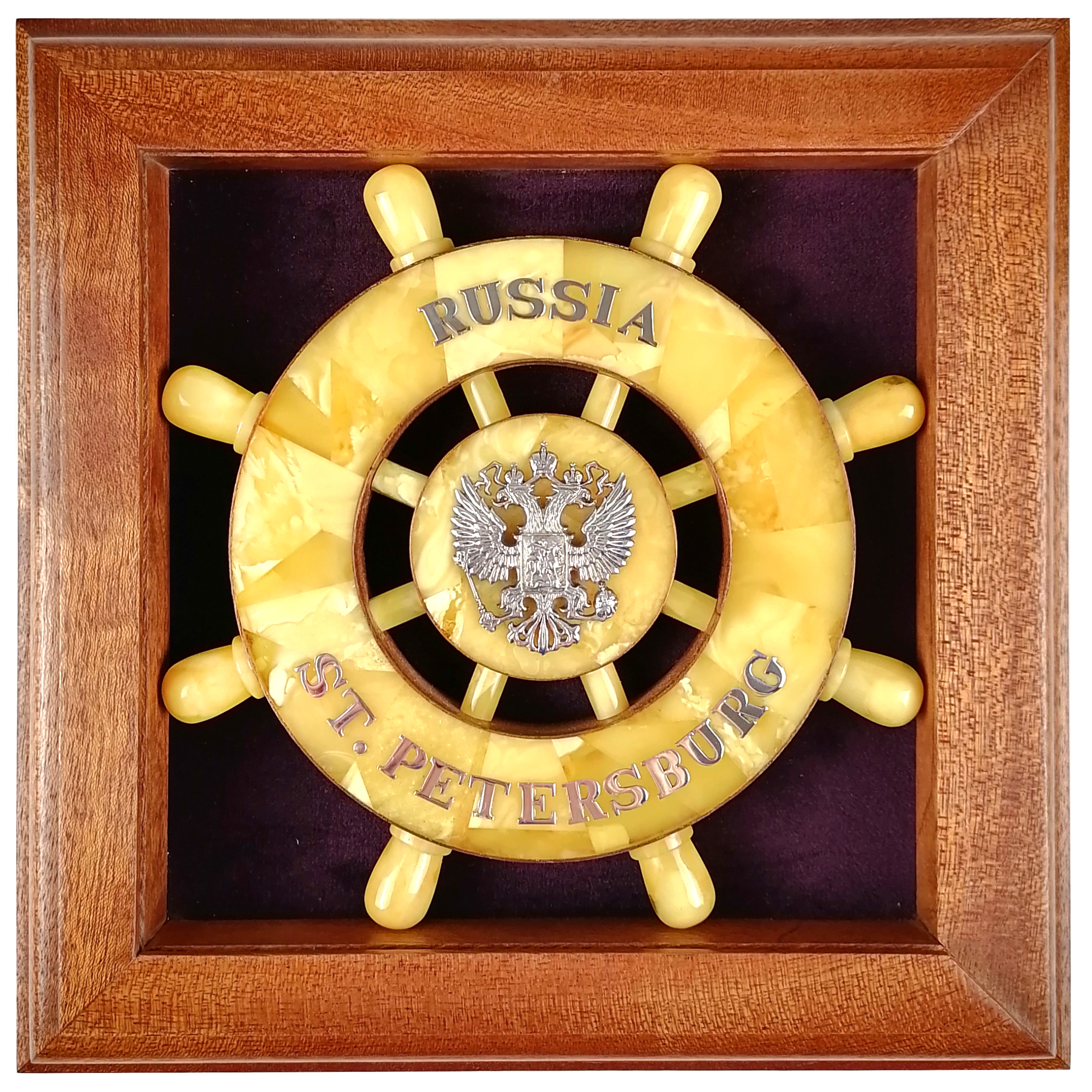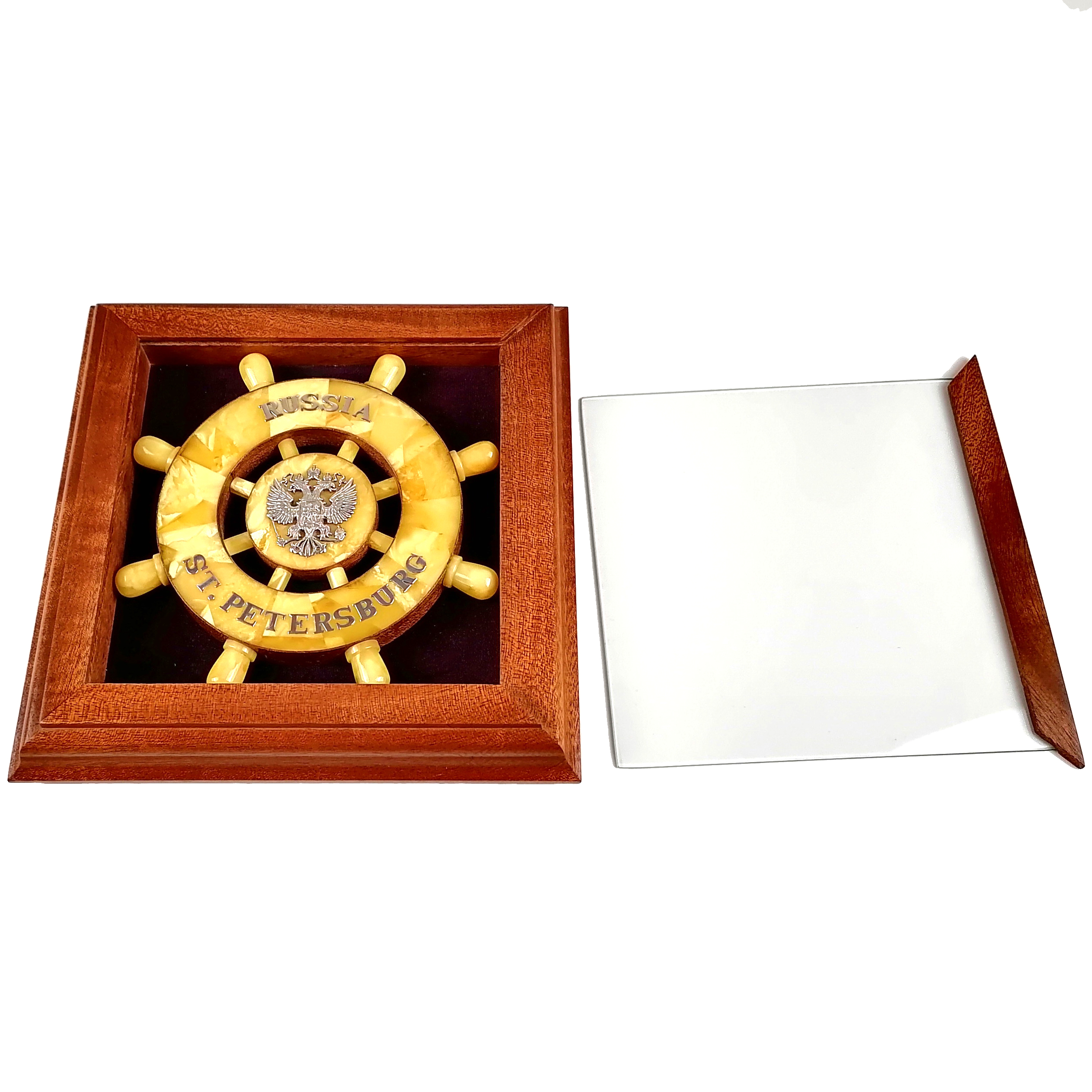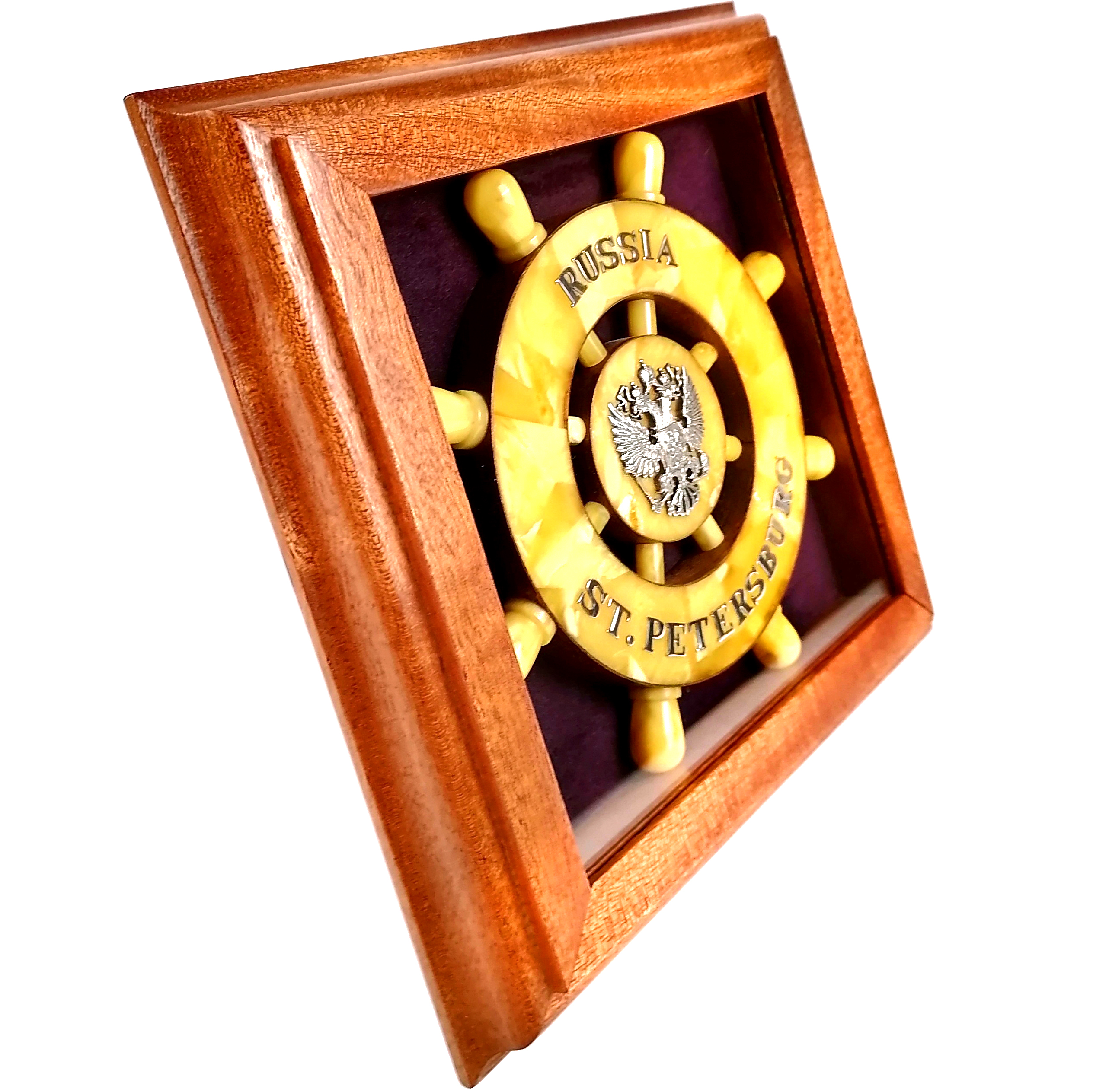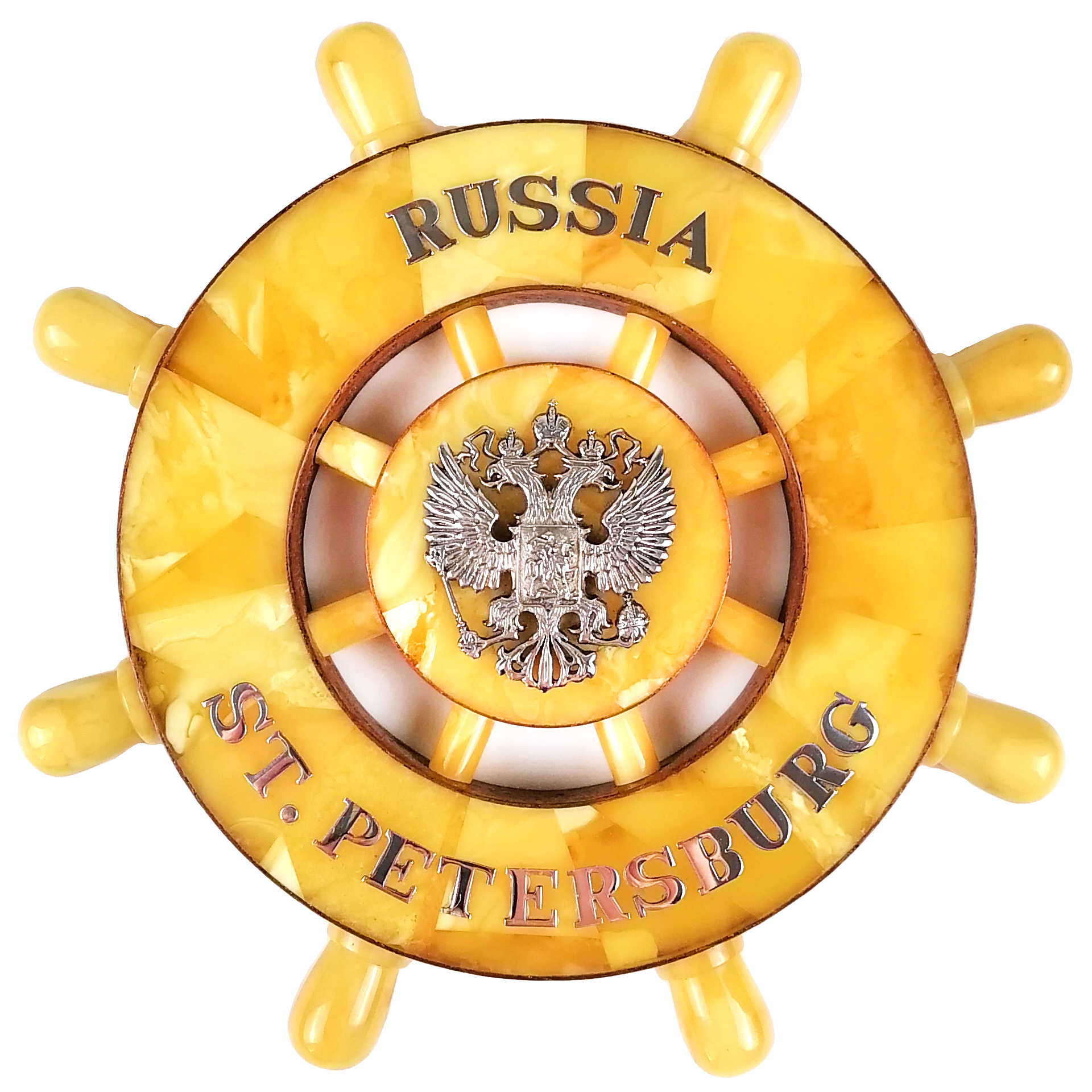 Panel souvenir made of amber "Steering Wheel of St. Petersburg"