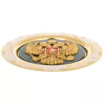 Такая тарель предназначена для кабинета руководителя, зала переговоров или в качестве протокольного подарка. Это предмет, символизирующий государственную силу, преемственность традиций и уважение к официальному статусу. Изделие органично впишется в классический интерьер и станет выразительным знаком признания и доверия.