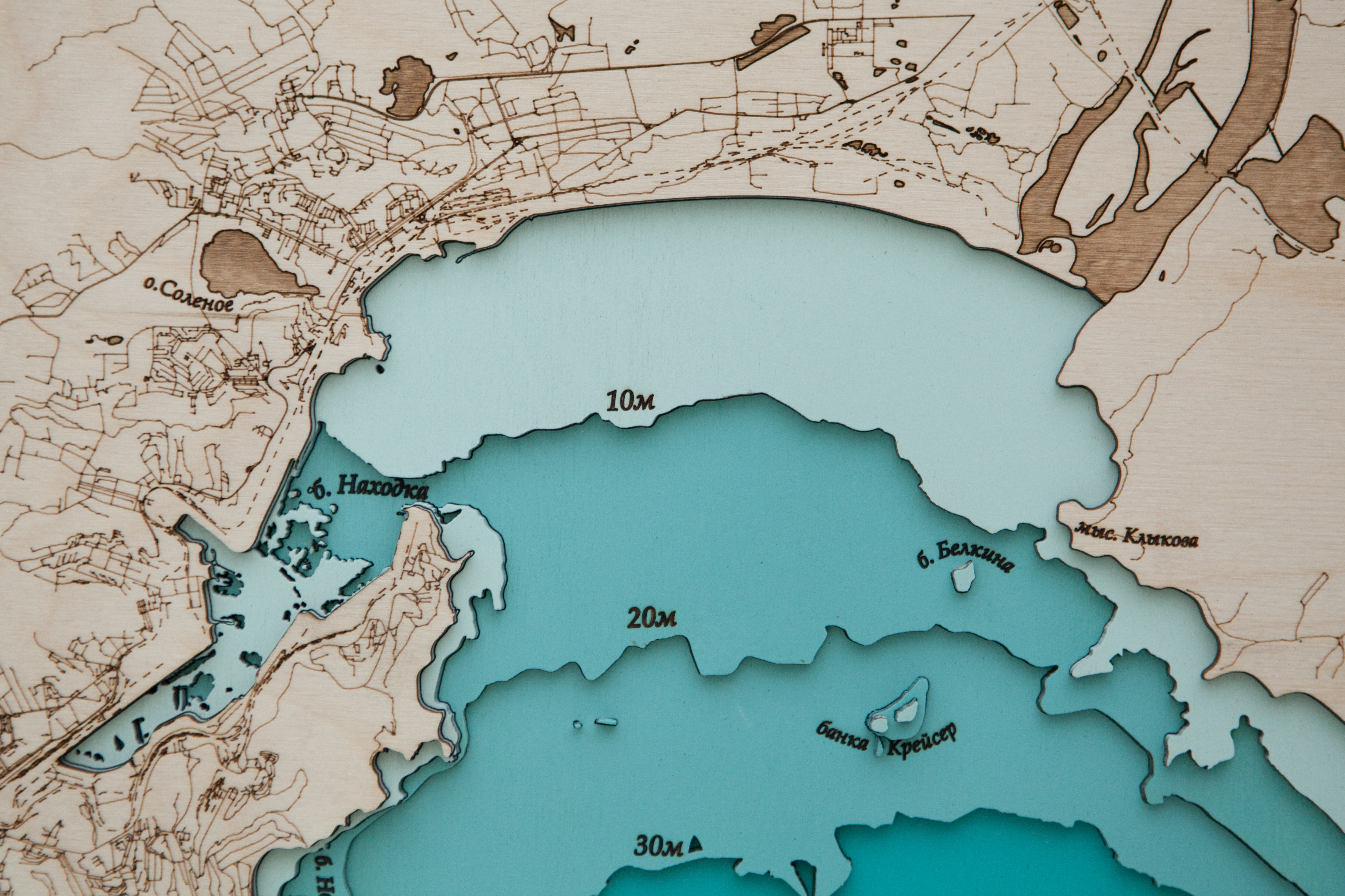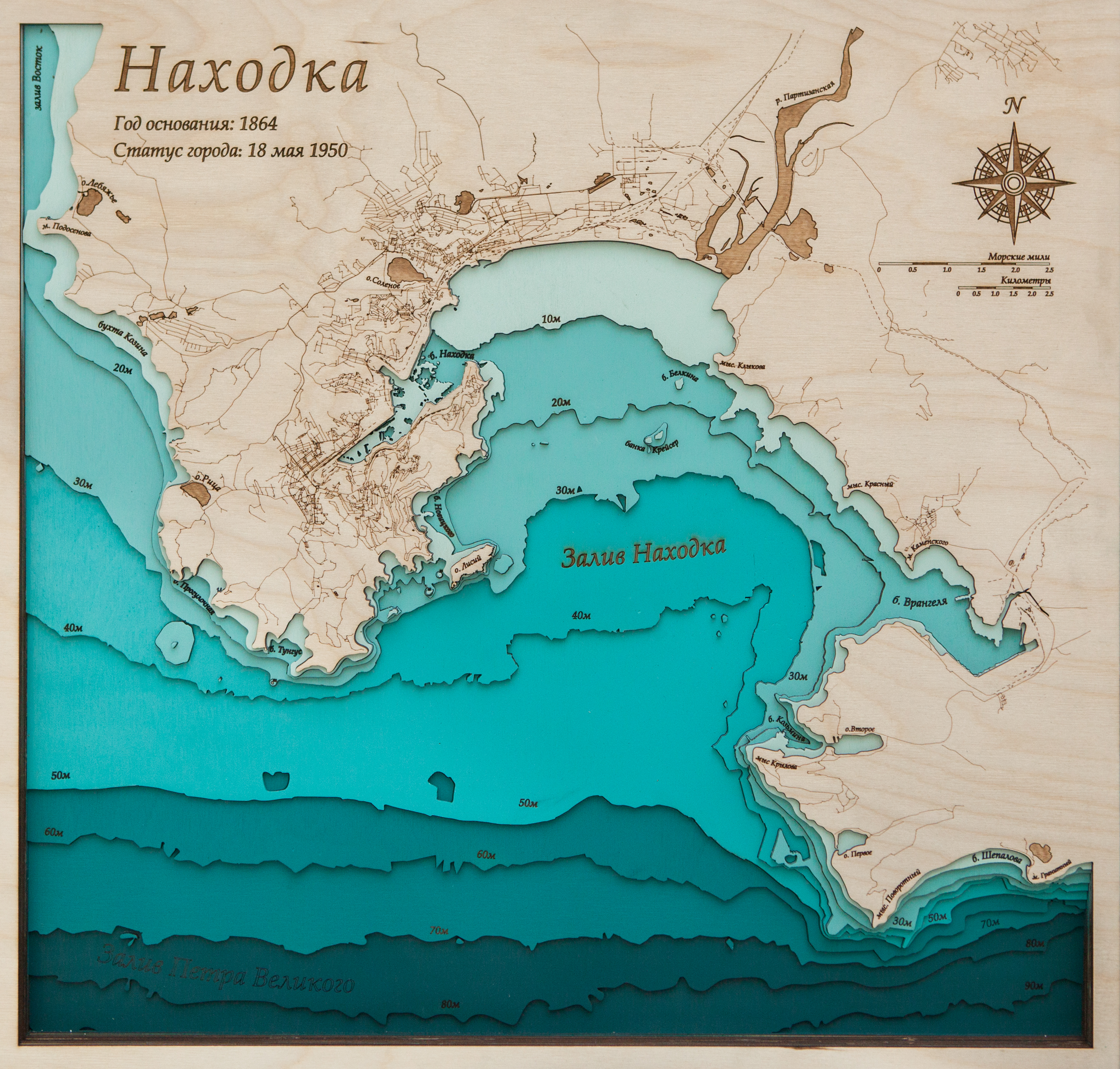 The map is a wooden multi-layered "Map ofNakhodka" to order