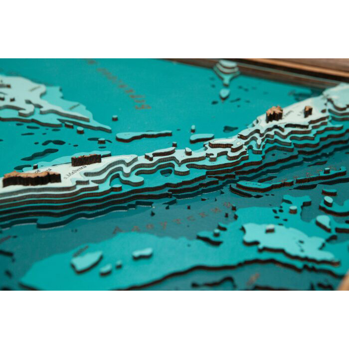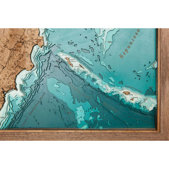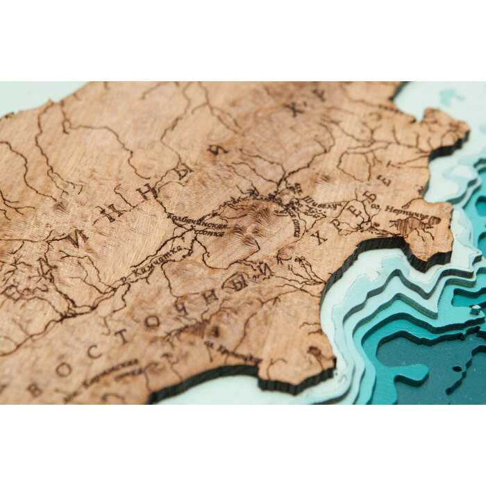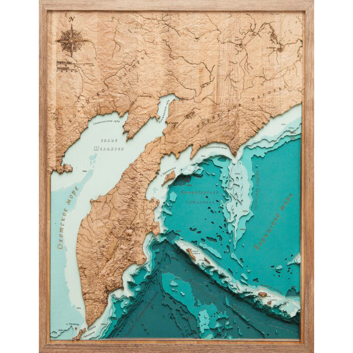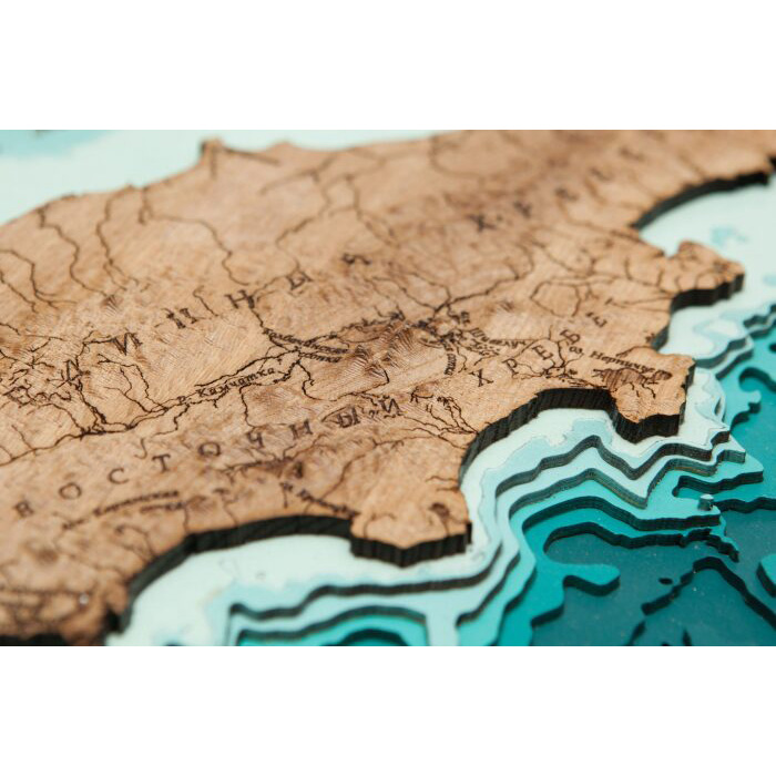 Map of the Kamchatka Territory, terrestrial relief, made of wood, to order