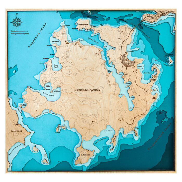 Russian island map made of wood, large, custom-made