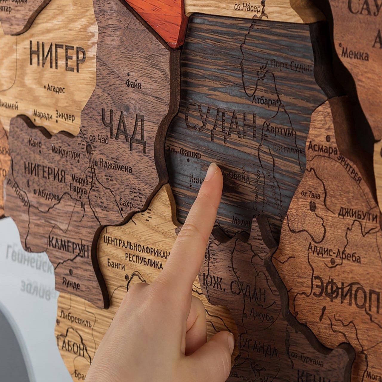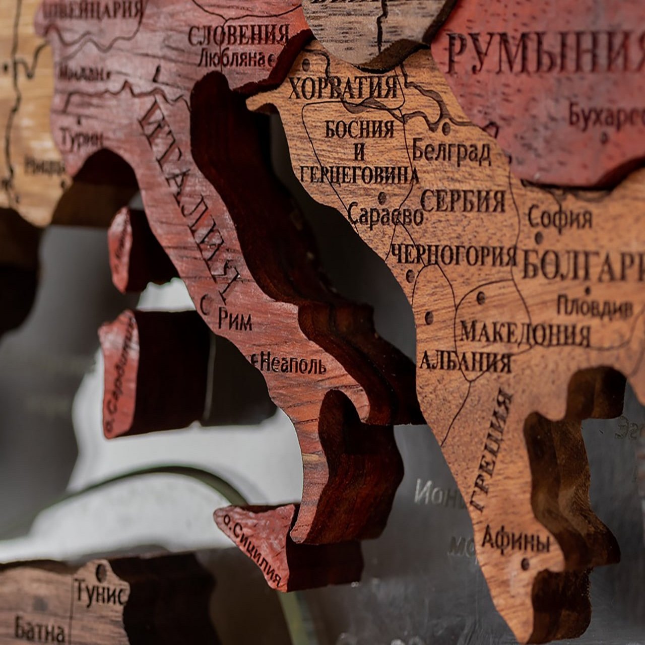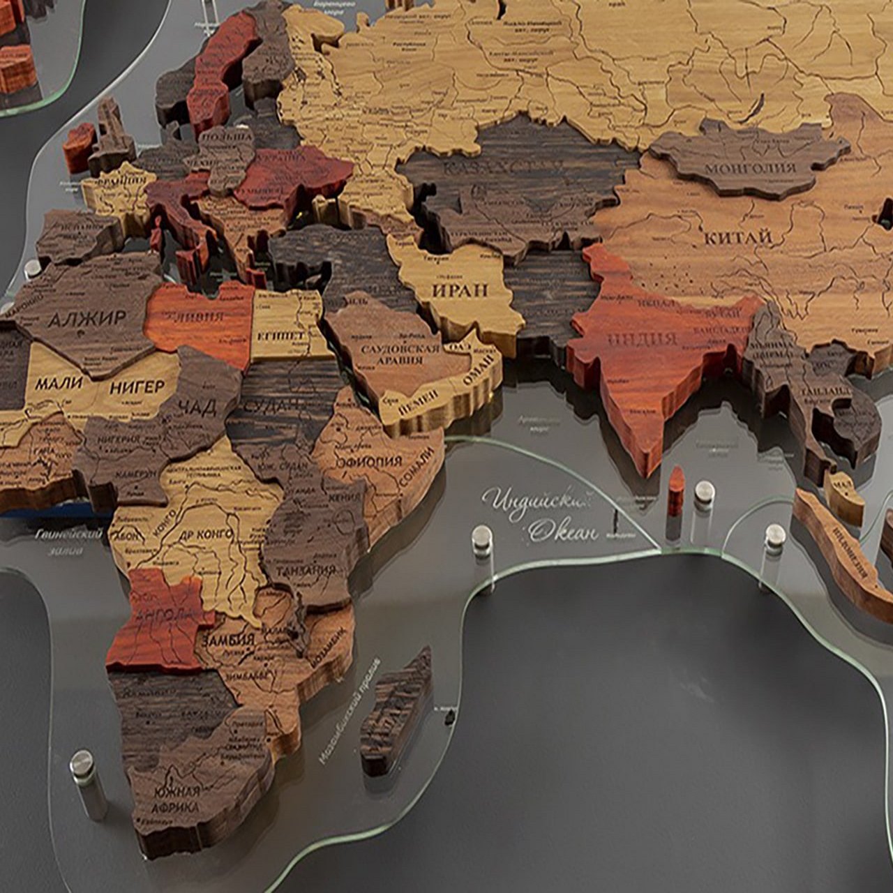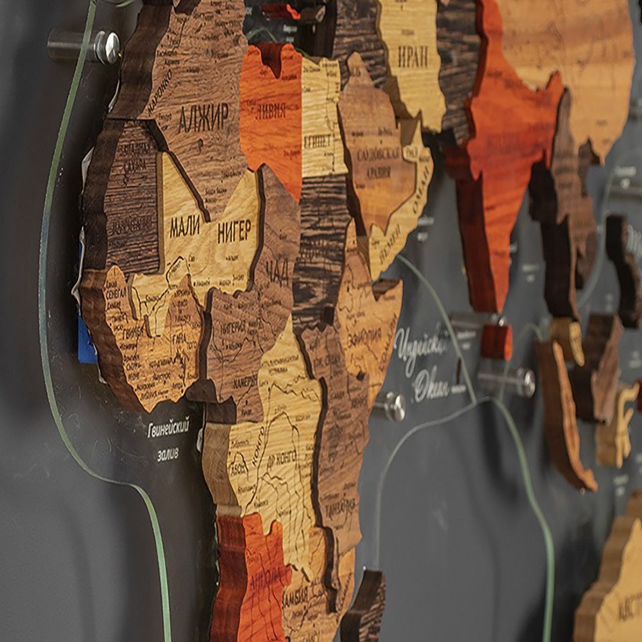 World map made of precious wood 3D "Exotic", custom made