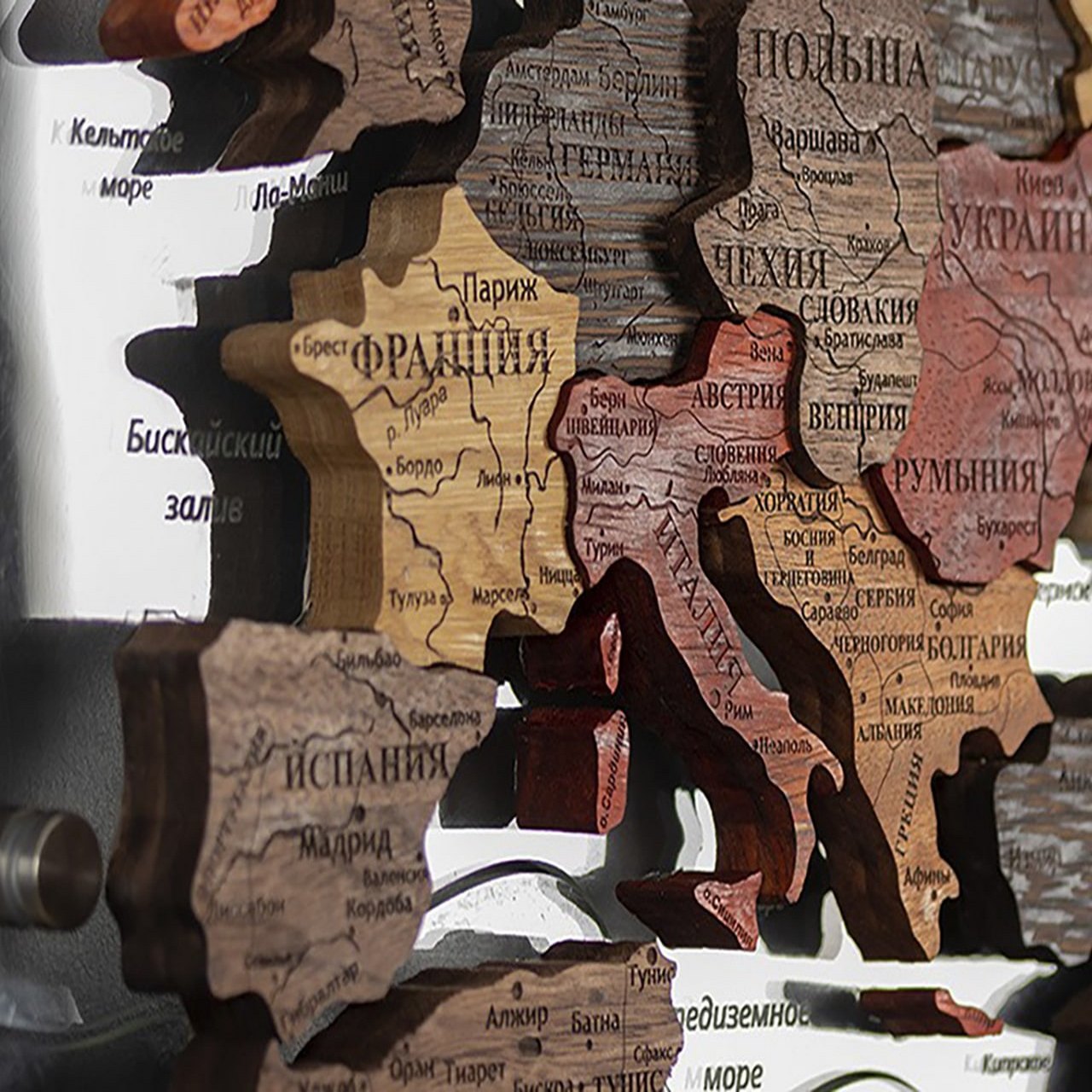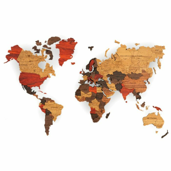 Cutwood is an interior world map made by hand from exotic woods. Cutwood was one of the first companies to master the development and production of wooden maps of the world. Her clients include large travel agencies, restaurants and hotels. Travel enthusiasts and dreamers will probably also want to buy a designer wooden world map on the wall.