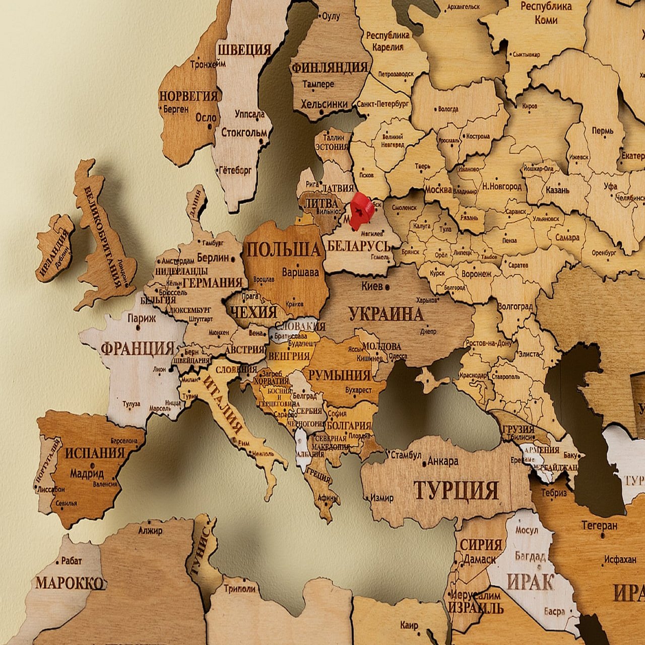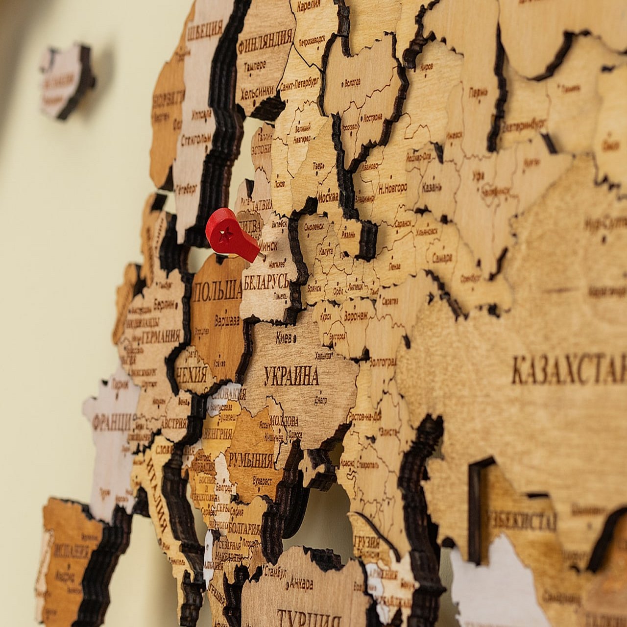 Cutwood is an interior world map made by hand from exotic woods. Cutwood was one of the first companies to master the development and production of wooden maps of the world. Her clients include large travel agencies, restaurants and hotels. Travel enthusiasts and dreamers will probably also want to buy a designer wooden world map on the wall.