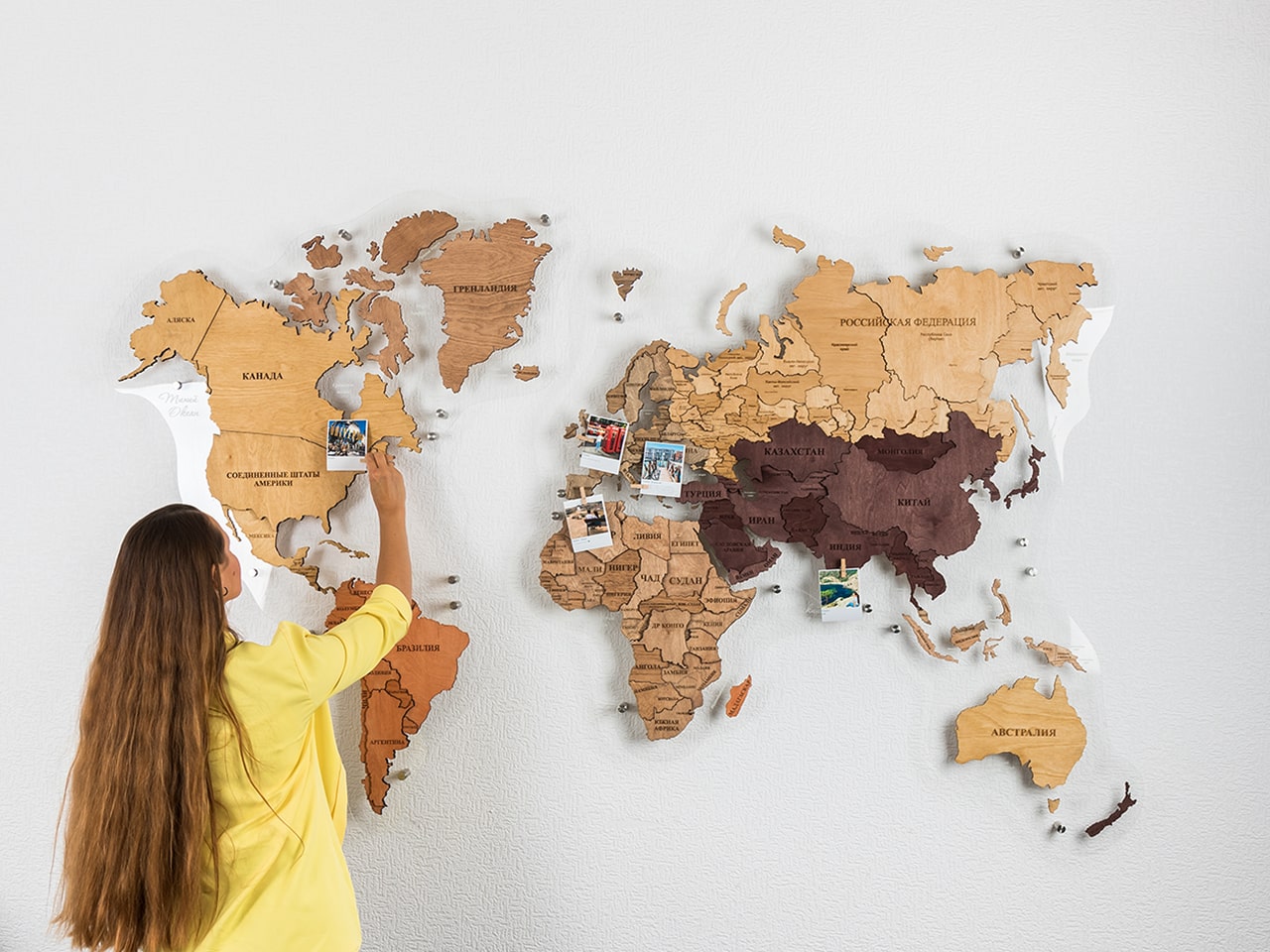 Cutwood is an interior world map made by hand from exotic woods. Cutwood was one of the first companies to master the development and production of wooden maps of the world. Her clients include large travel agencies, restaurants and hotels. Travel enthusiasts and dreamers will probably also want to buy a designer wooden world map on the wall.