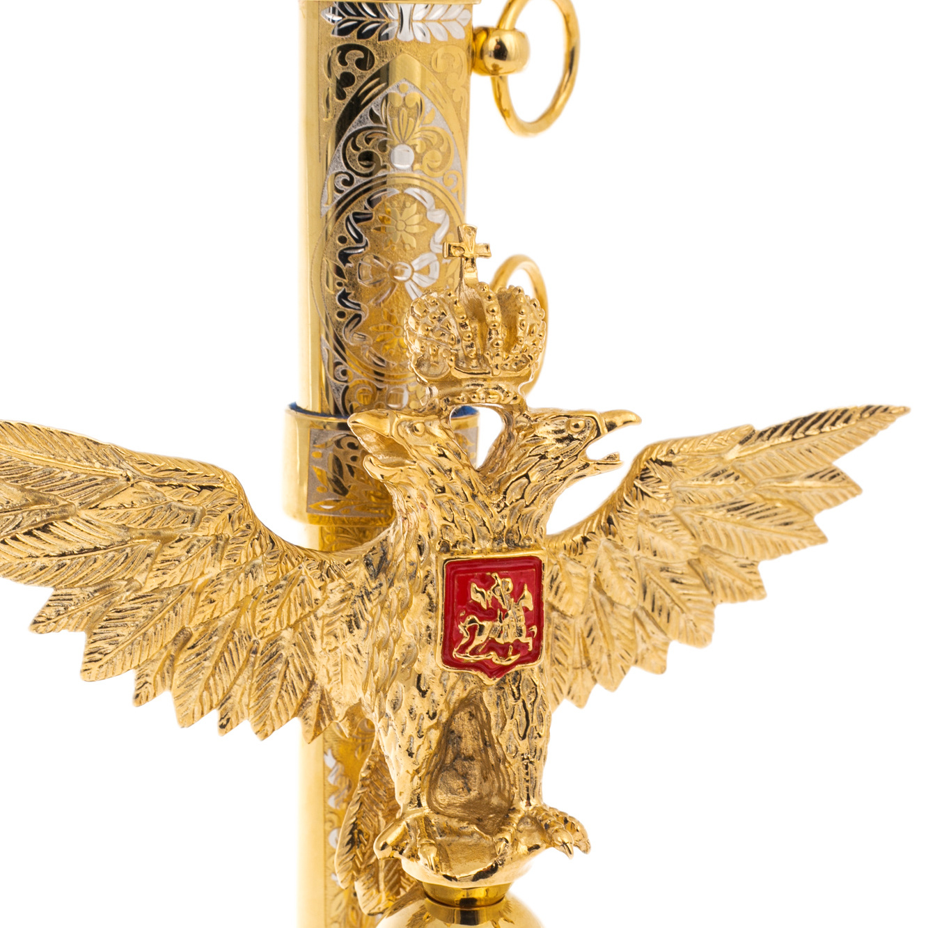 Этот сувенирный кортик не просто демонстрирует изысканность вкуса владельца — он свидетельствует о преемственности силы и памяти. Символика двуглавого орла, воплощенная в золоте и камне, отсылает к государственным традициям и имперскому наследию, напоминая о вечных ценностях чести, служения и достоинства. Подобный артефакт выбирается не для украшения, а для того, чтобы говорить за своего обладателя без слов.