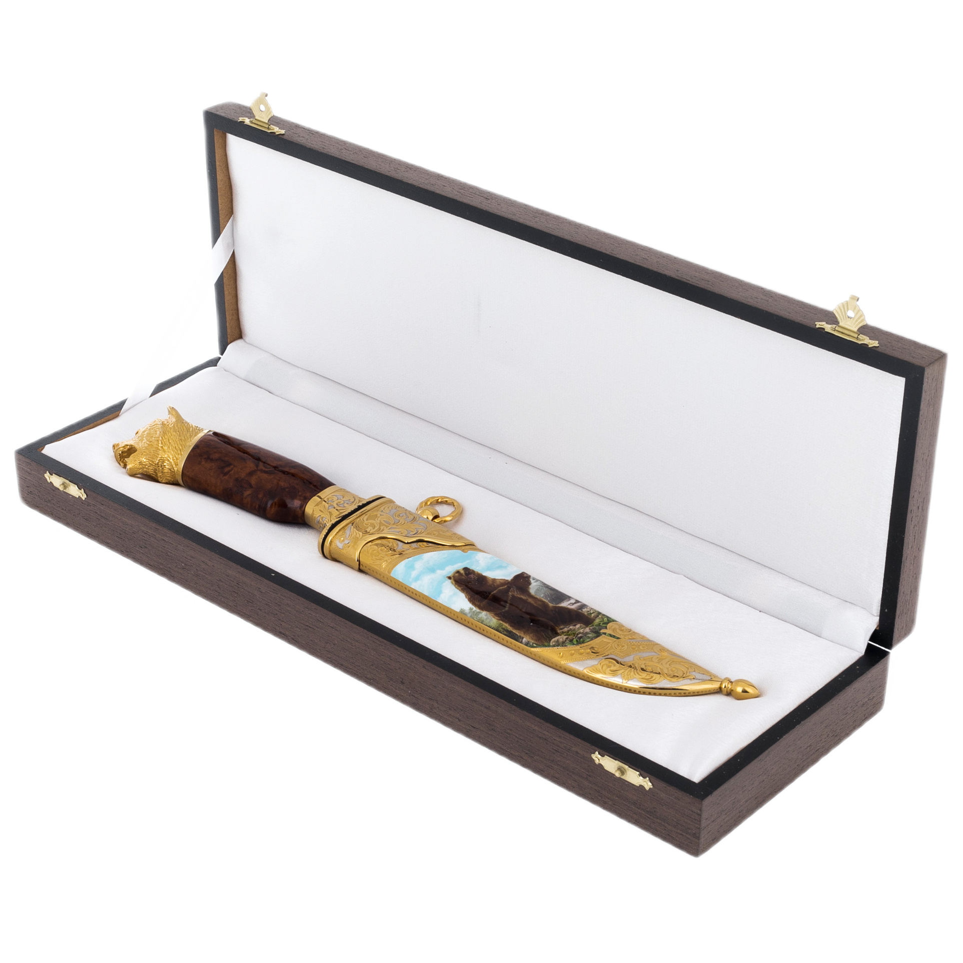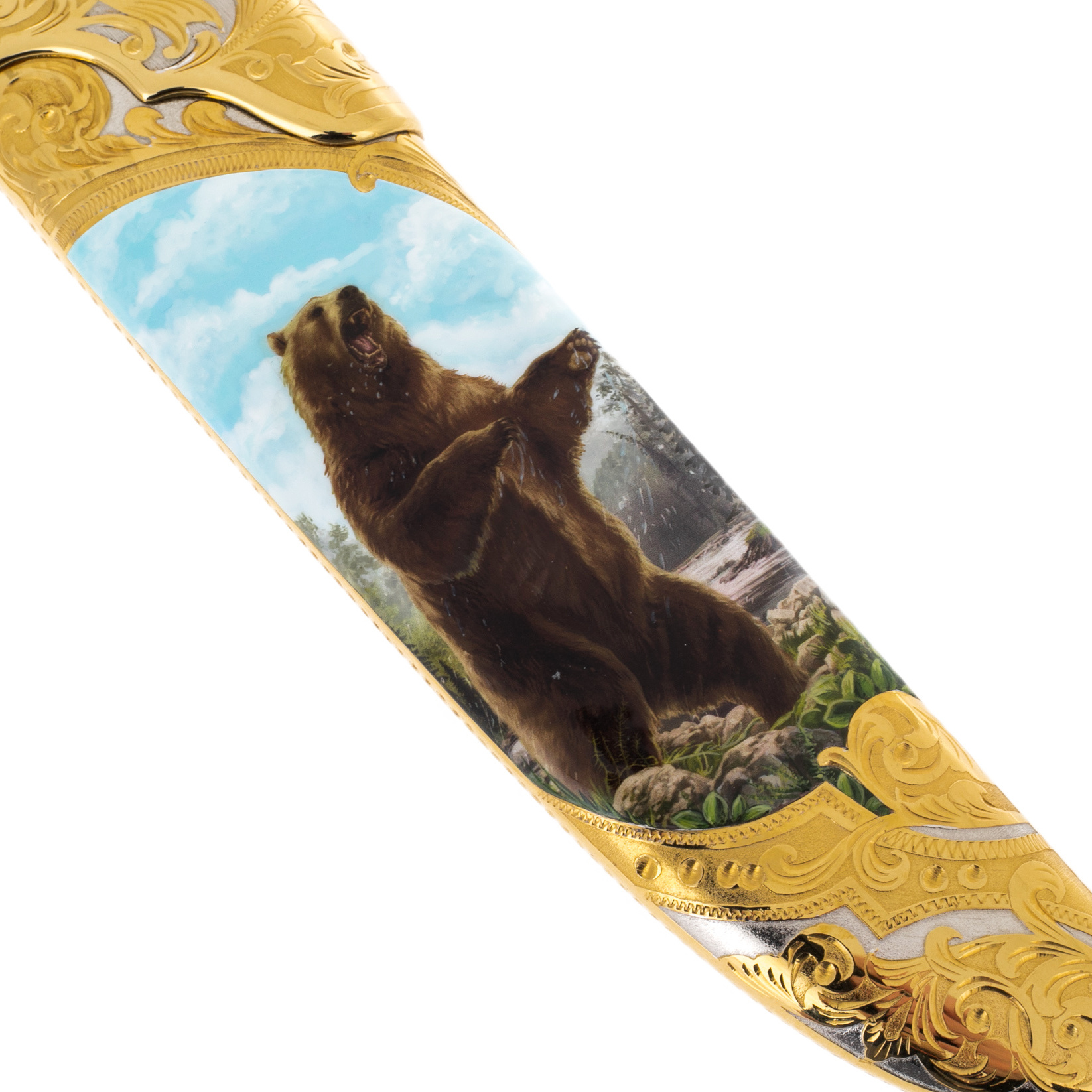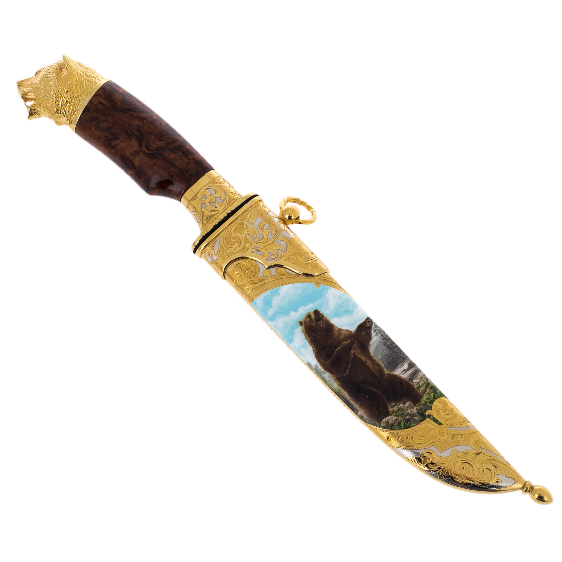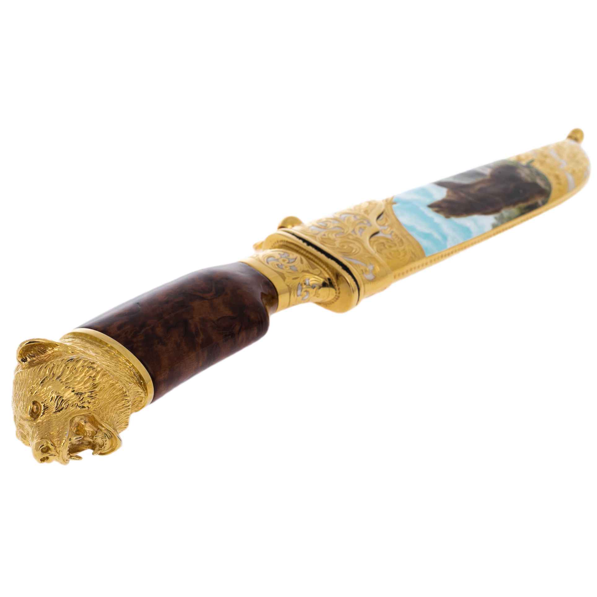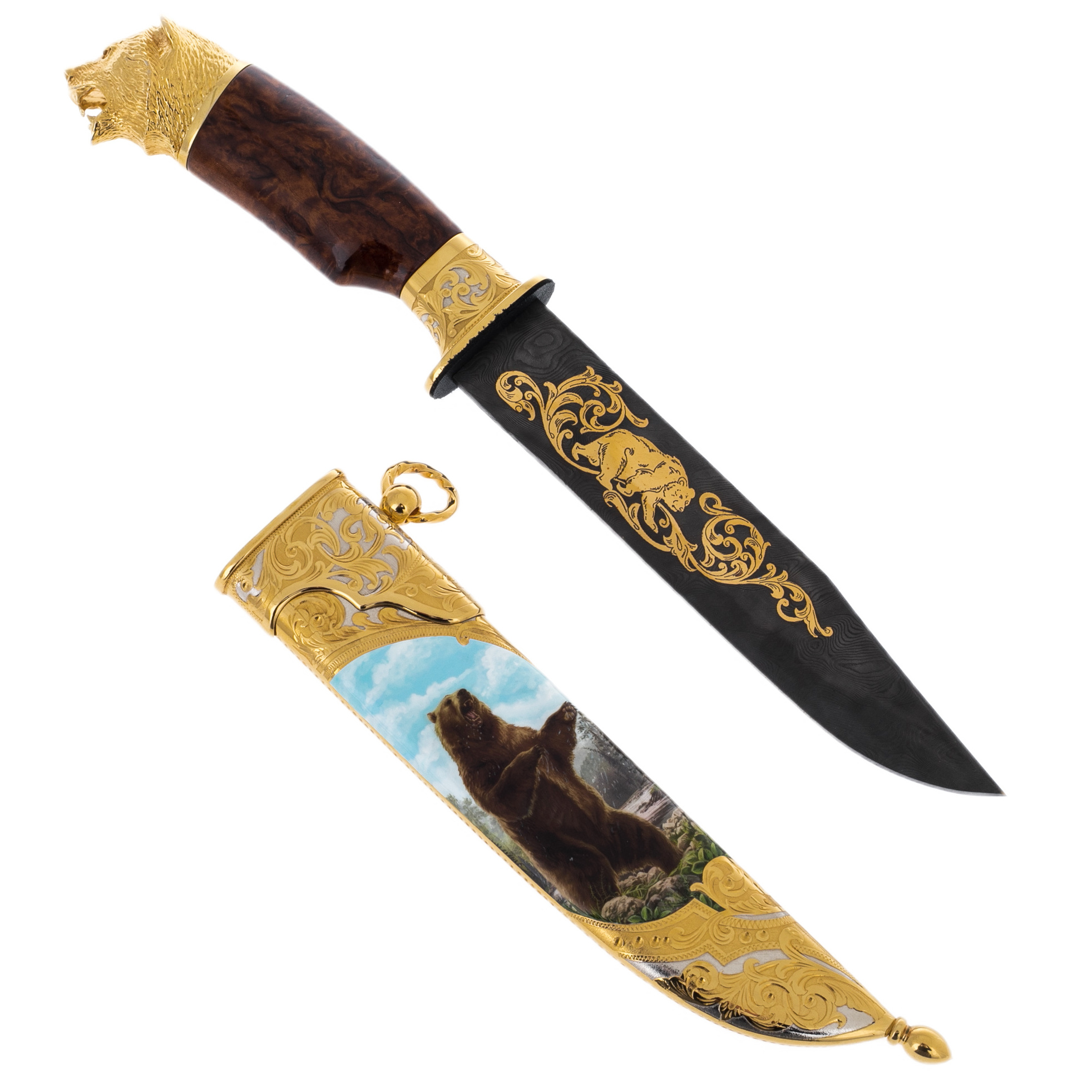 Materials:nickel, gold, damascus, Karelian birch, artistic casting, enamel.