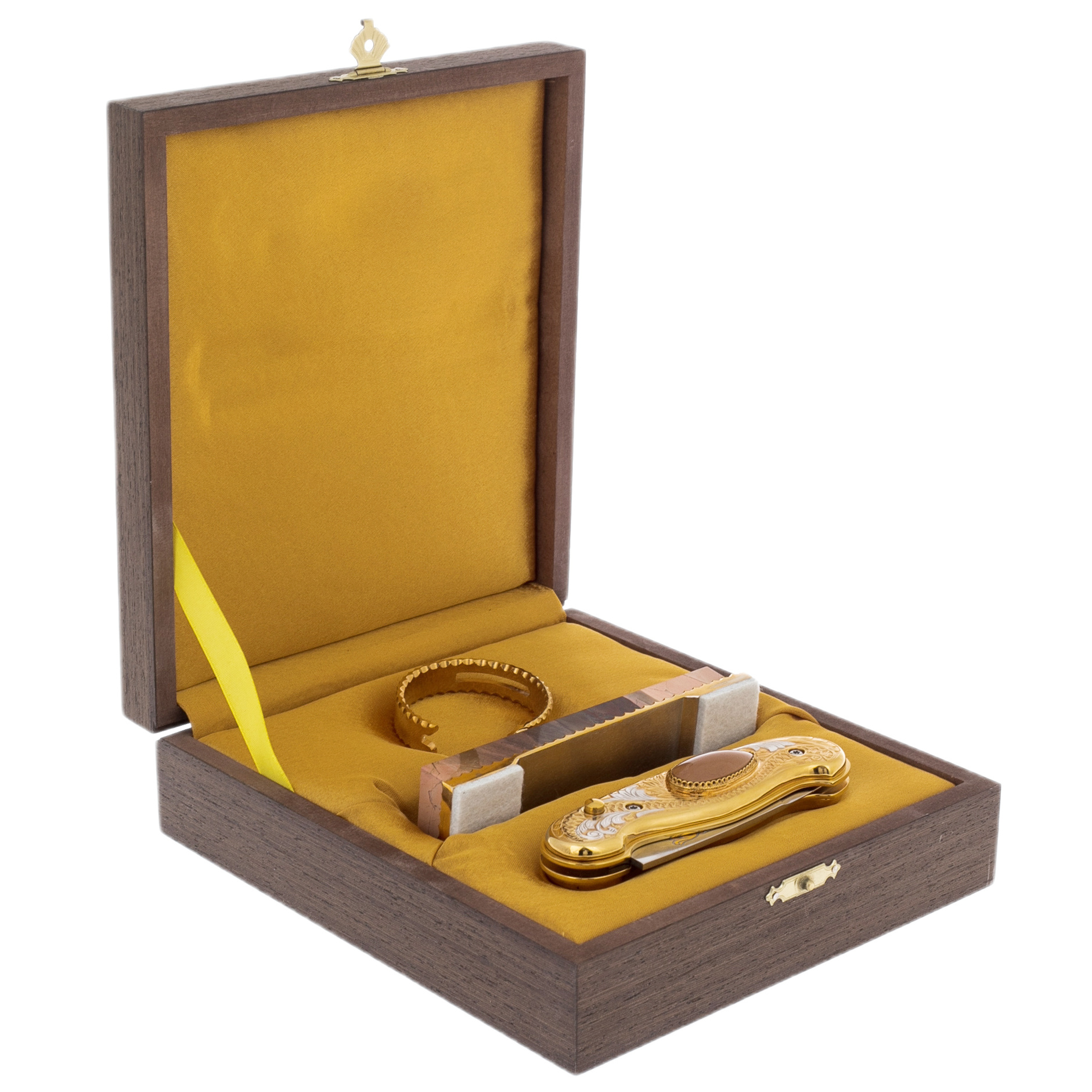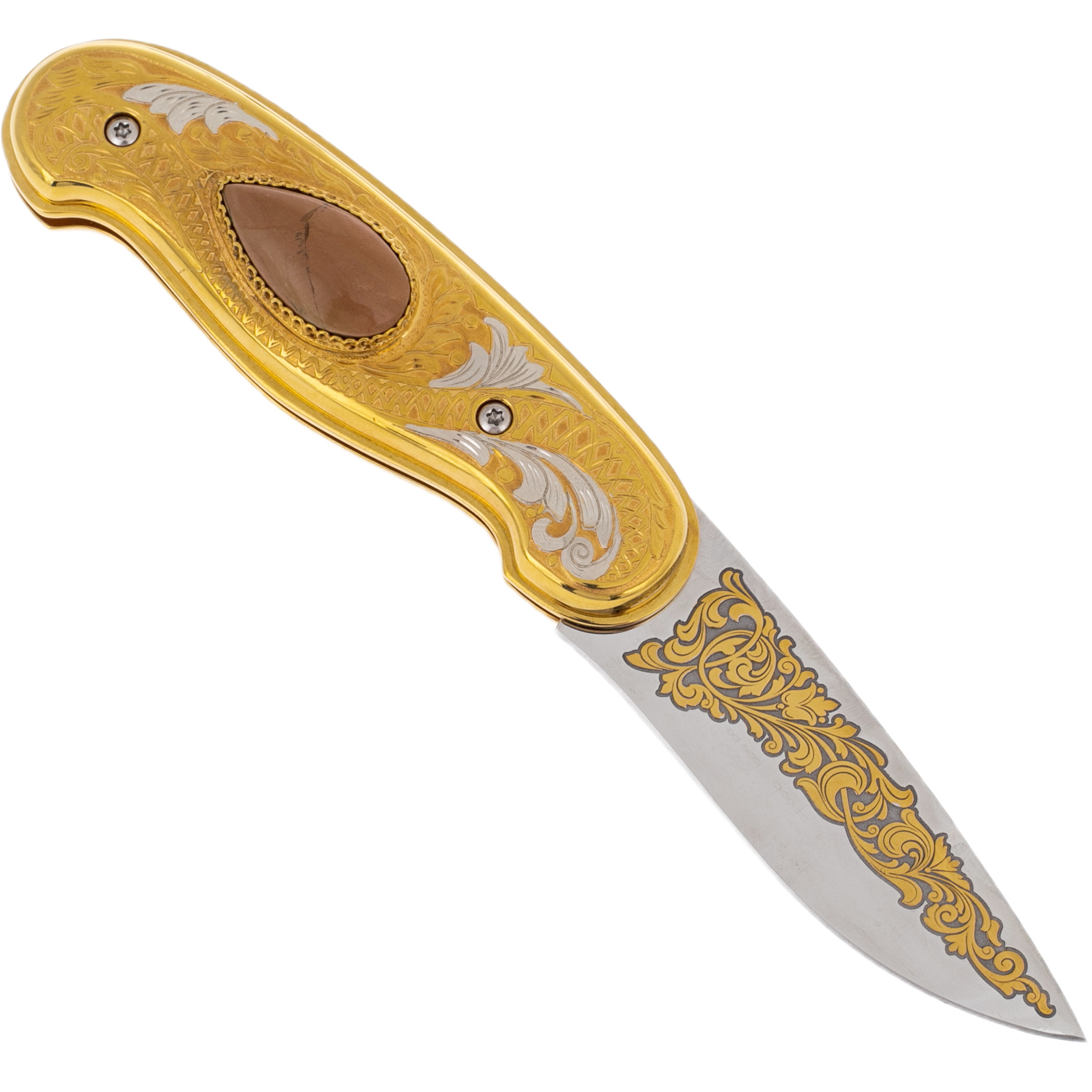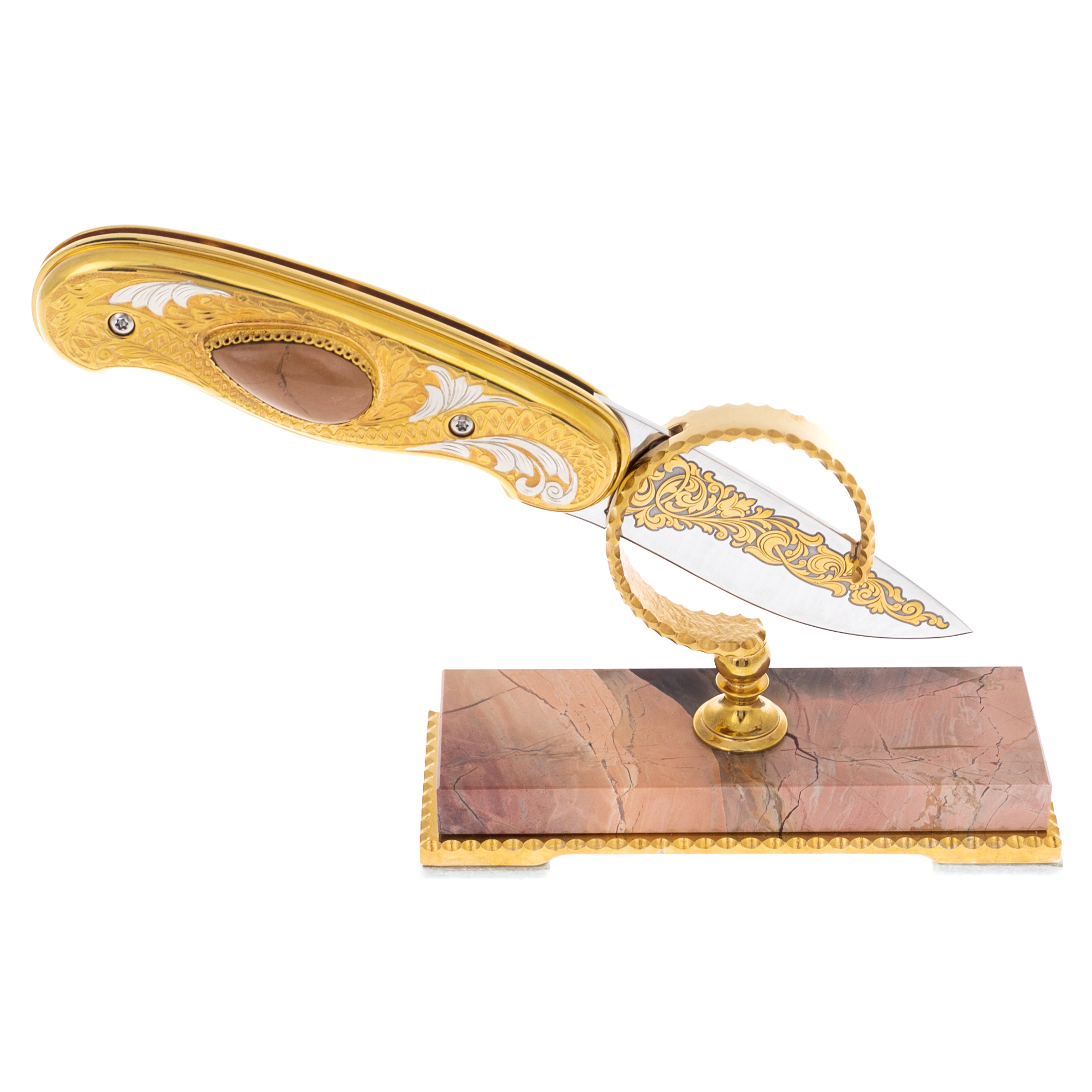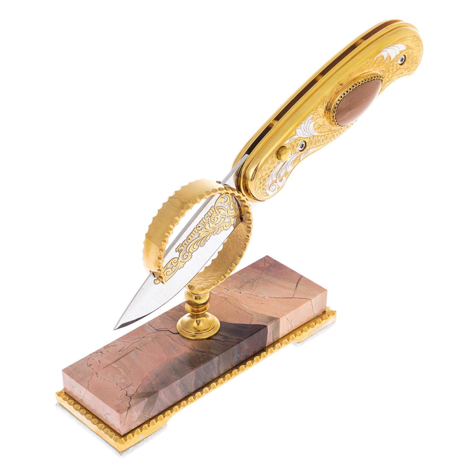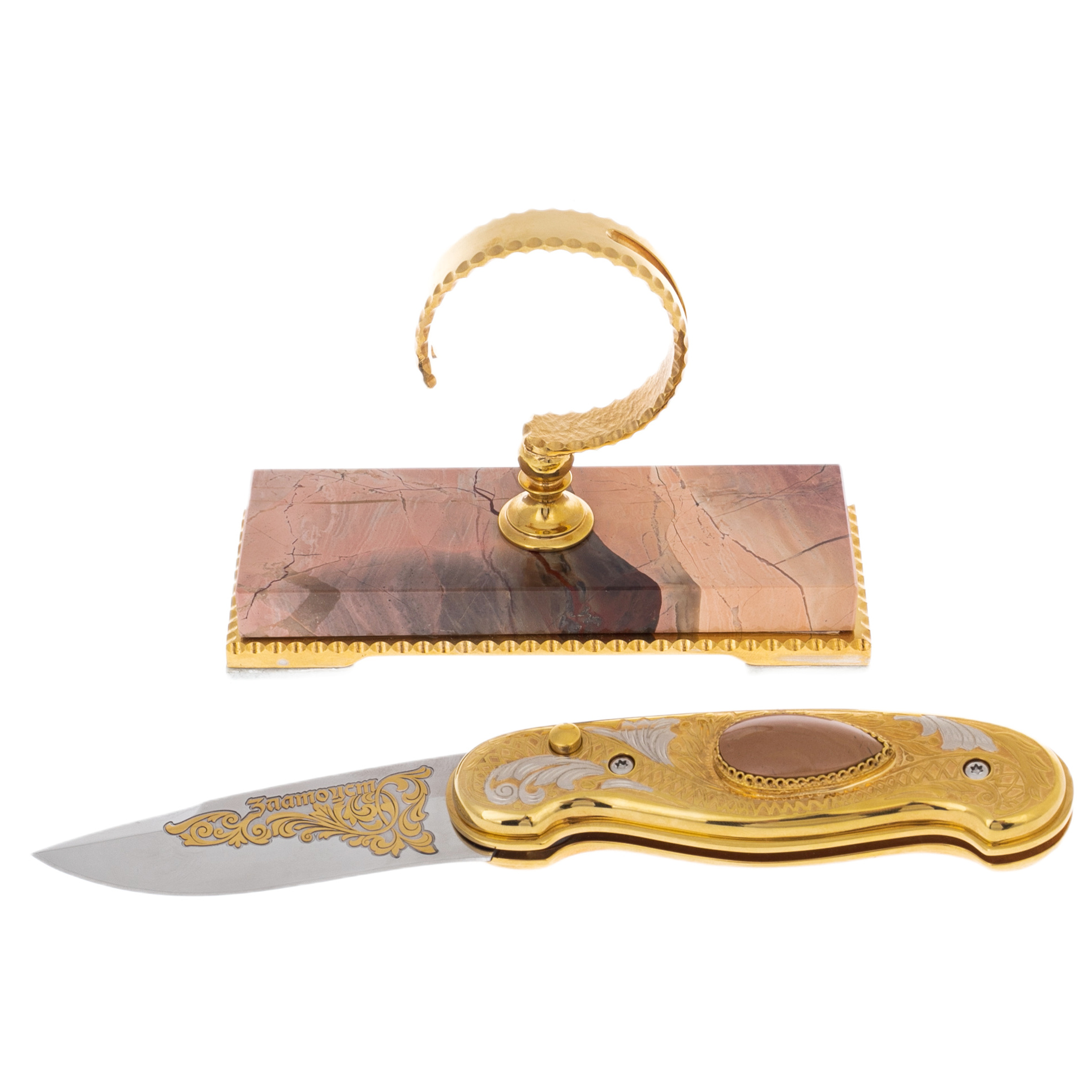 Folding knife "Desert" on a jasper stand, Zlatoust