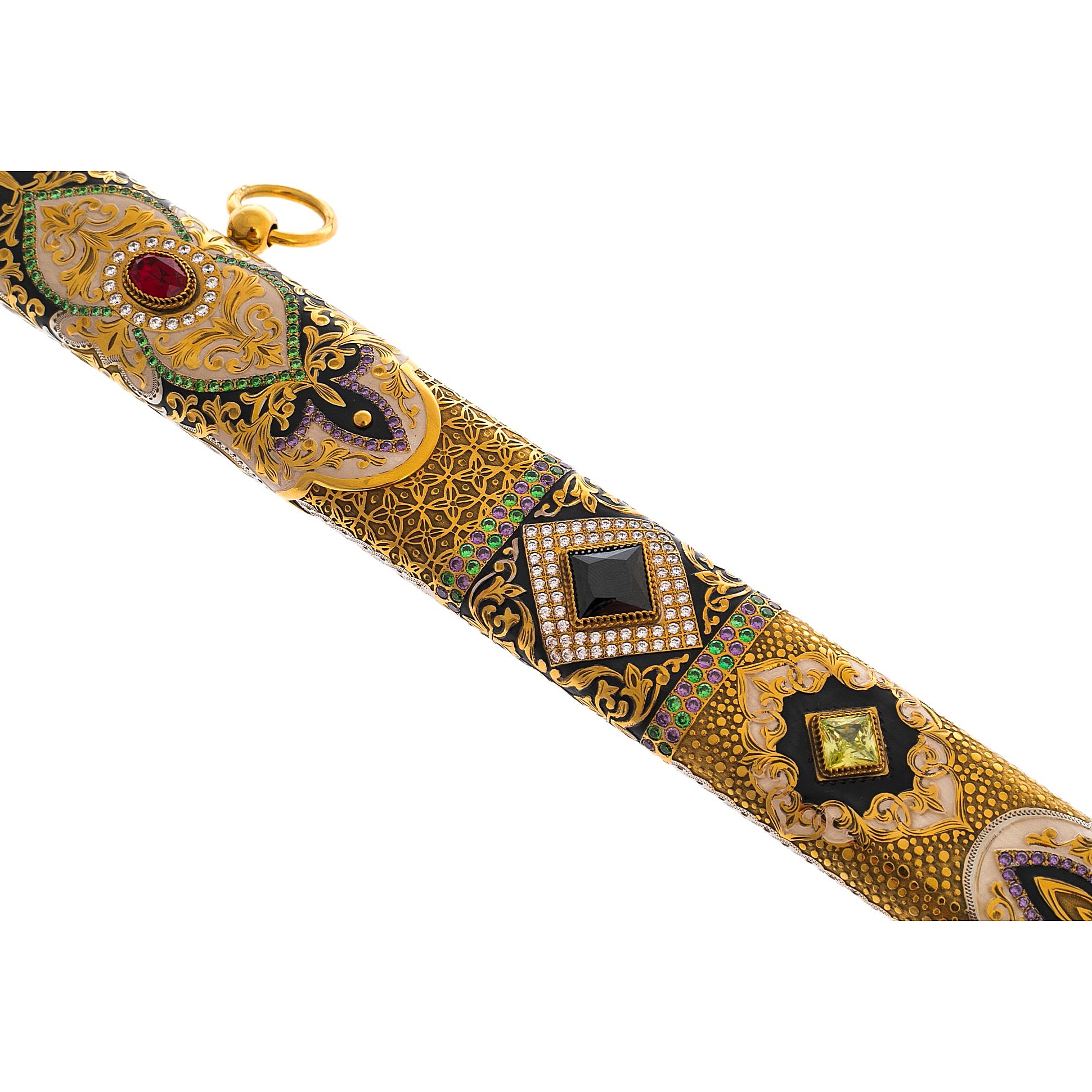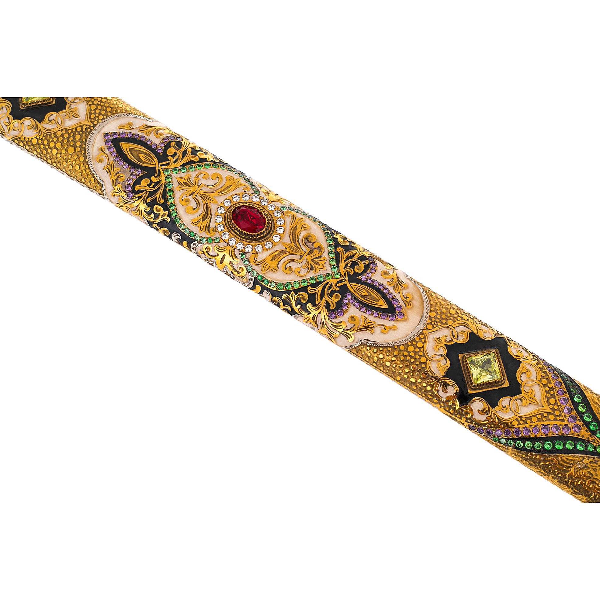 Materials:brass, steel, nickel, gilding, colored cubic zirconia.