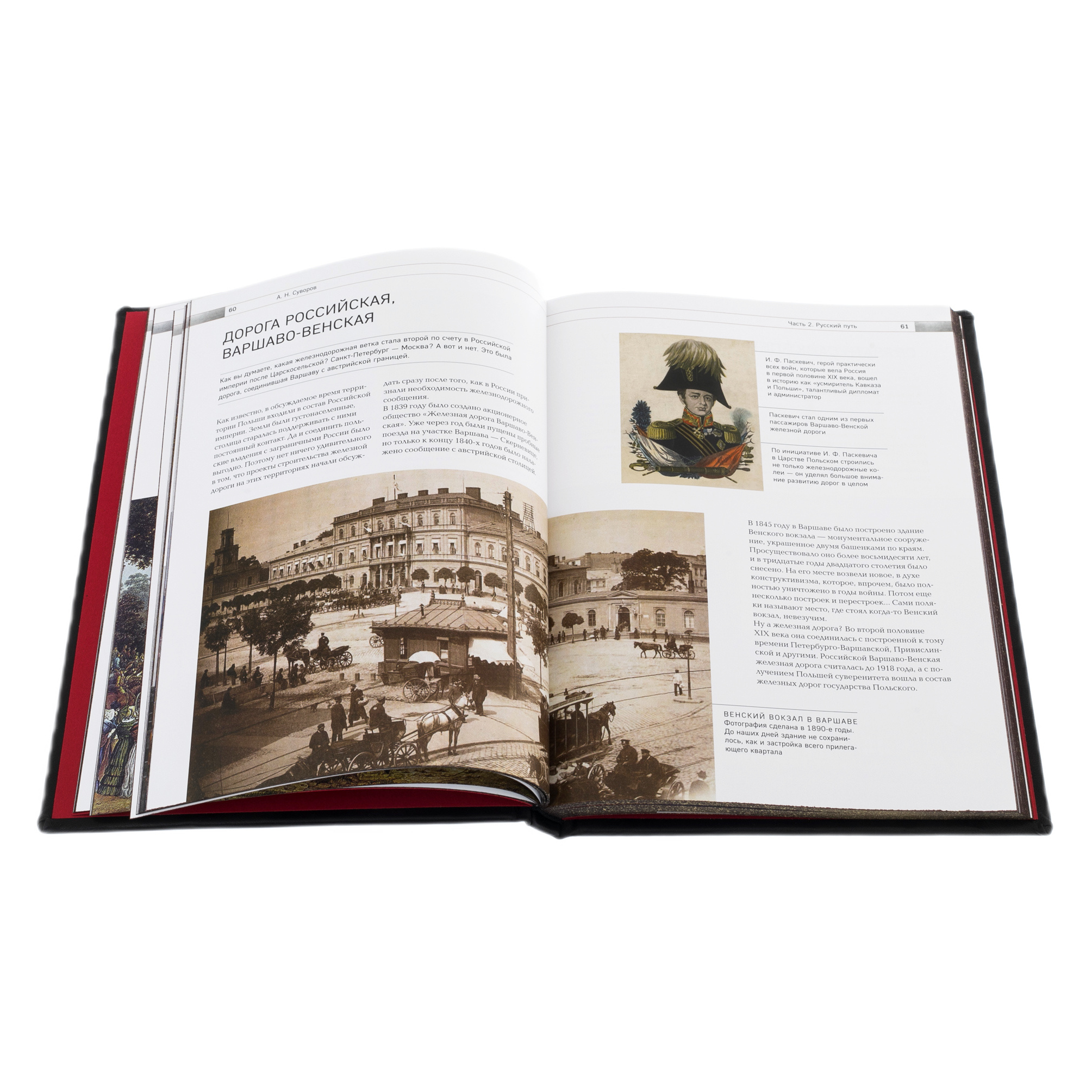 Подарочная книга в кожаной обложке "История железных дорог Российской империи"