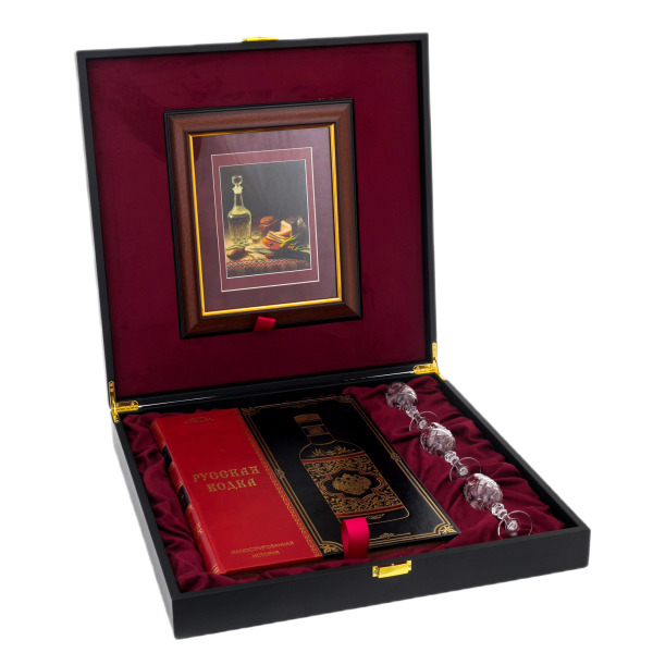 Подарочная книга в кожаном переплете "Русская водка" с рюмками и панно