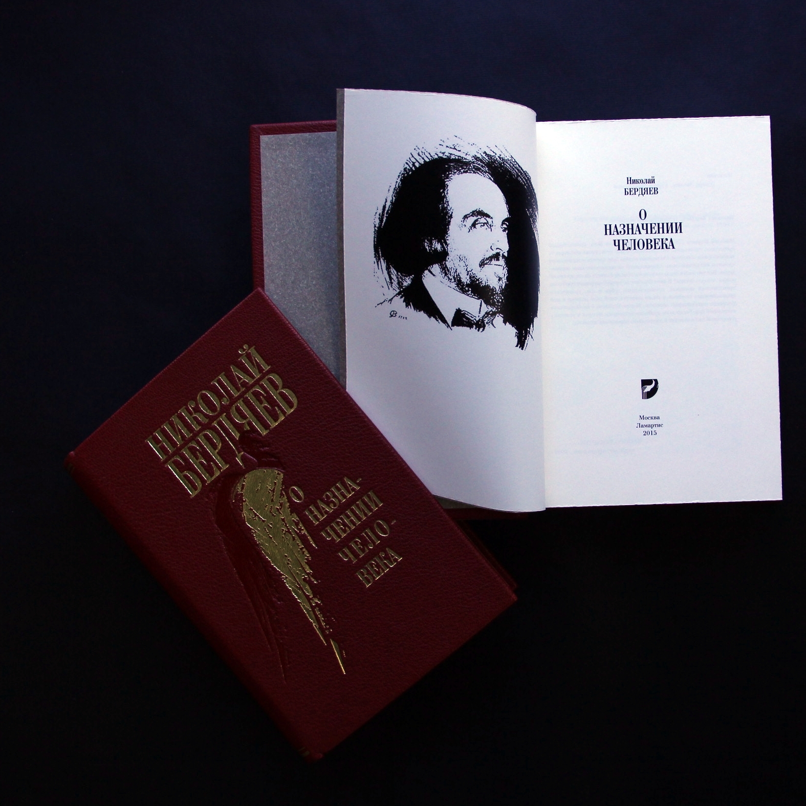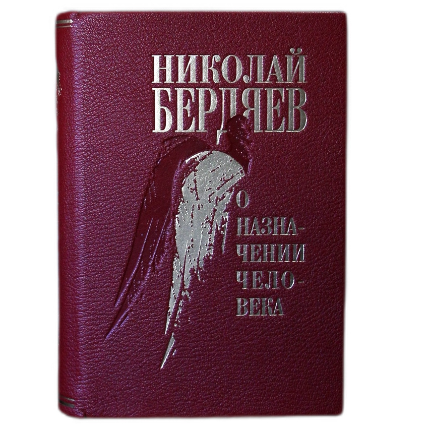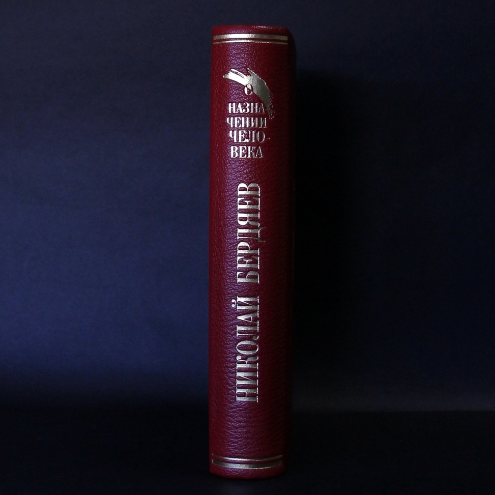 A leather-bound book "On the appointment of a person" by N. Berdyaev.