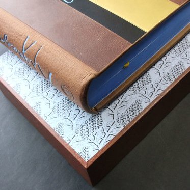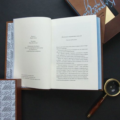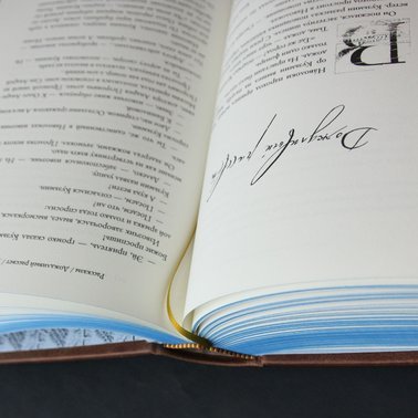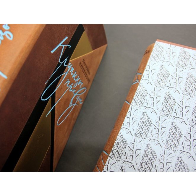 Peculiarities:Silk captals and lasses, flyleafs made of designer paper with an author's pattern, the binding is decorated with embossed gold and pigment foil.