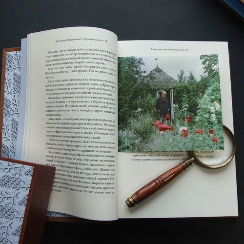 The leather-bound book "Grains of Truth" by K. Paustovsky