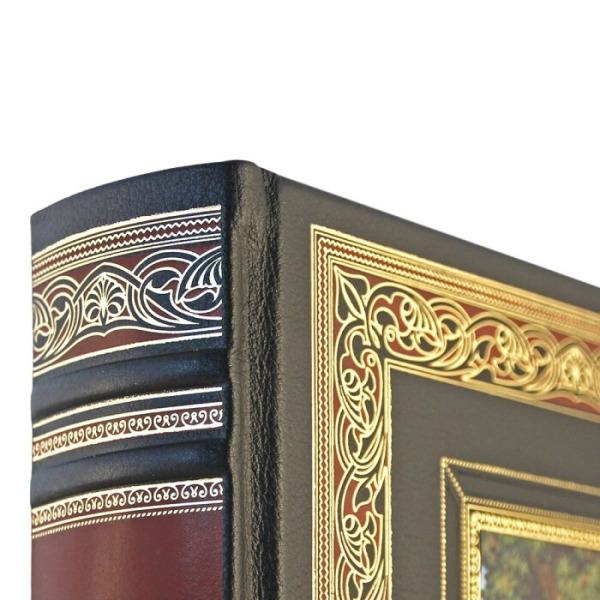 The chic gift ten-volume book is presented in a classic binding, invented in the XVII-XVIII centuries. The combination of pancake and gold embossing, made on high-quality genuine leather, gives an incredible visual effect. The design is complemented by a cut-off painted to match the binding material. Lasse.