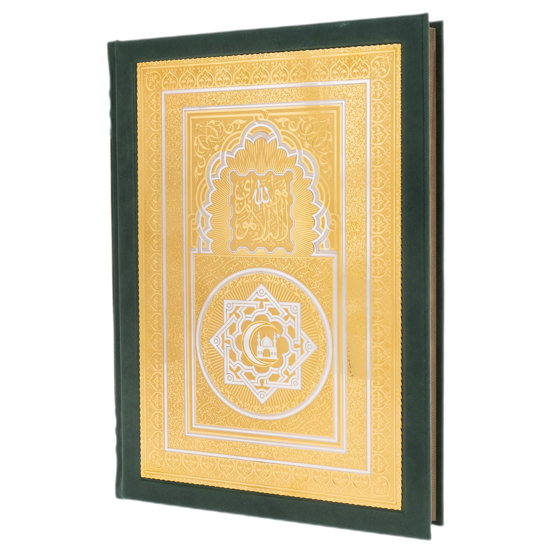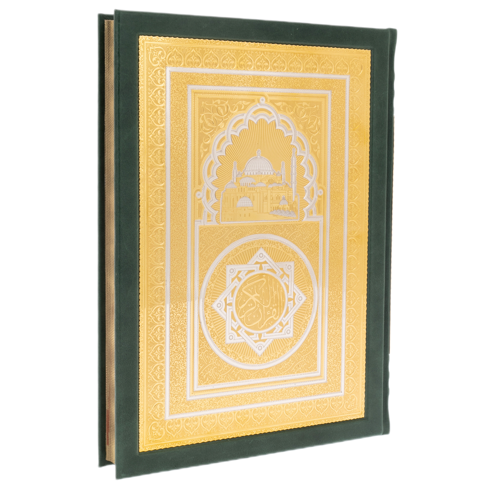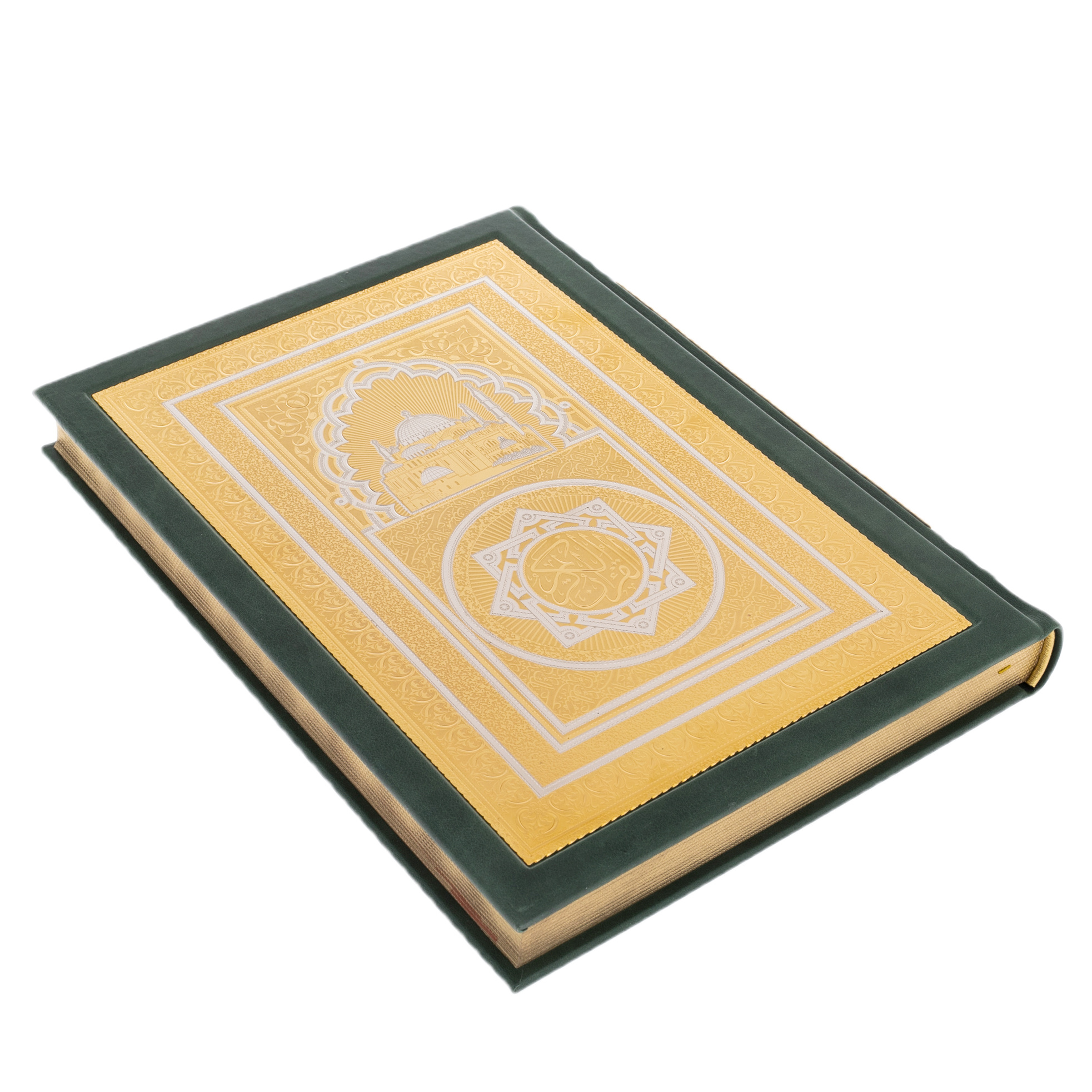 The Koran with pencil case and rosary comes in a leather-covered box with a convenient clasp. It is possible to apply a gift engraving in Arabic or Russian on the nameplate.