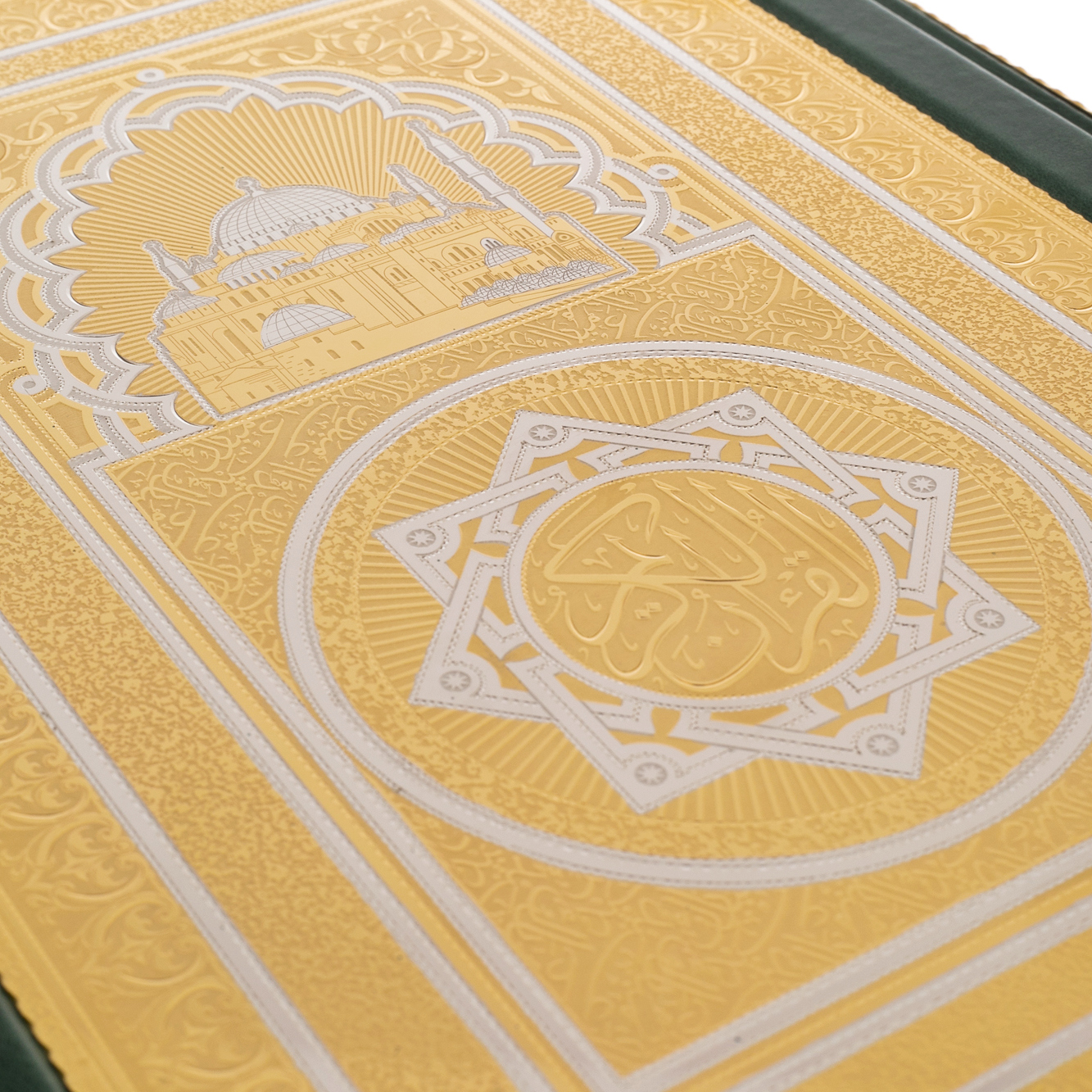The holy Book requires an expensive setting. And the masters of Chrysostom know a lot about exquisite decor. Tanning and pressing leather, drawing ornaments, engraving on metal - all this is manual laborious work. But the result is worth it. After etching in the oven, the patterns look just magical. Voluminous, expressive, they are complemented by inserts of bright malachite. A mosque, a holy place for all Muslims, is depicted on the pencil case with special enamels.
