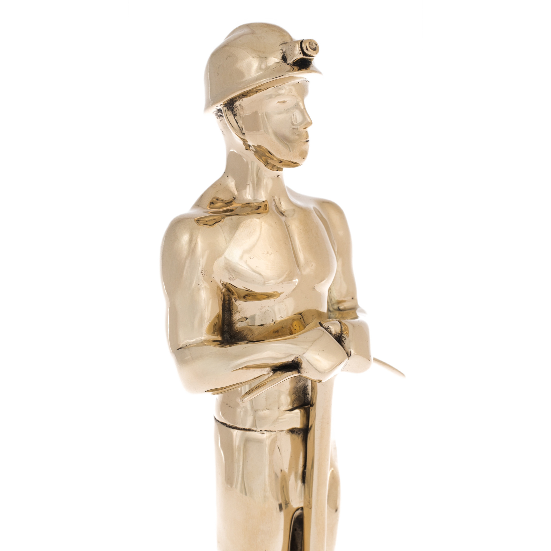 The statuette, made with the highest degree of craftsmanship, depicts a miner standing firmly on his pedestal. His proud bearing and confident gaze embody the spirit of a leader, a man capable of withstanding any challenges. A miner's helmet with a lantern emphasizes attention to detail, and the tool in his hands reminds of the power of labor, paving the way to the very bowels of the earth.