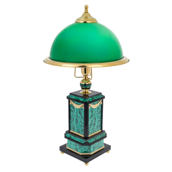 Table lamp "Victoria" made of malachite (small)Table lamp "Victoria" made of malachite (small)The products are made of high quality natural materials. The filigree elaboration of details characterizes the impeccable work of the master.