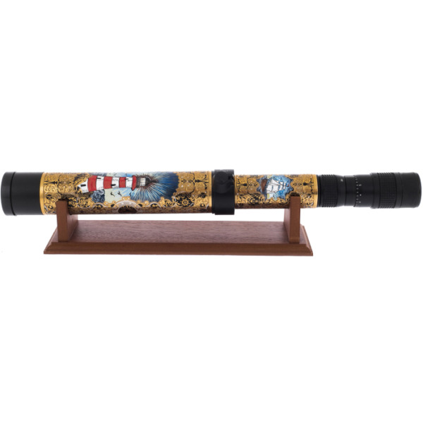 Telescope "Falcon" ZlatoustTelescope "Falcon" ZlatoustSouvenirs made by Zlatoust craftsmen surprise with their quality and look like museum value. Modern metalworking technologies with a unique ornament on a sparkling polished surface have made products from Zlatoust recognizable among other souvenirs. The use of a chisel gives the drawing a special flavor and elegance, and the embossing, glazing, blackening, etching and electroplating are executed masterfully and flawlessly. Looking at the Zlatoust products with carefully crafted details, you understand that this is how an ideal engraving should stand out.