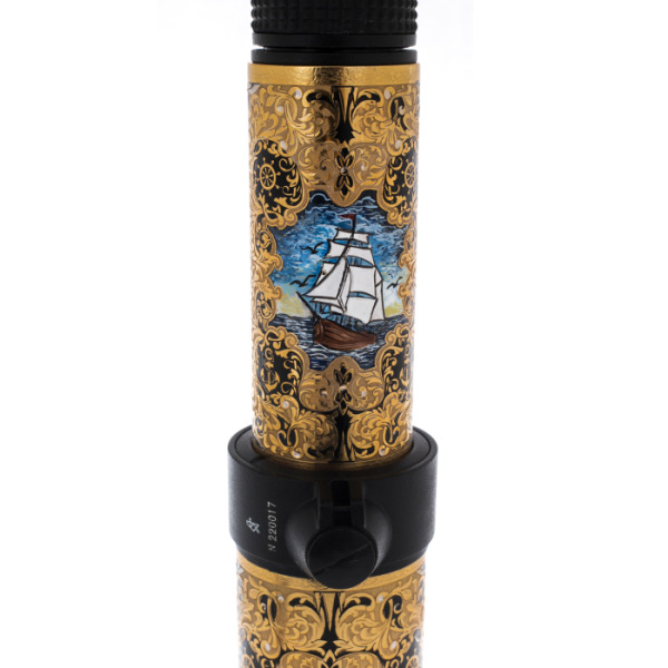 Telescope "Sea battle" ZlatoustTelescope "Sea battle" ZlatoustSouvenirs made by Zlatoust craftsmen surprise with their quality and look like museum value. Modern metalworking technologies with a unique ornament on a sparkling polished surface have made products from Zlatoust recognizable among other souvenirs. The use of a chisel gives the drawing a special flavor and elegance, and the embossing, glazing, blackening, etching and electroplating are executed masterfully and flawlessly. Looking at the Zlatoust products with carefully crafted details, you understand that this is how an ideal engraving should stand out.